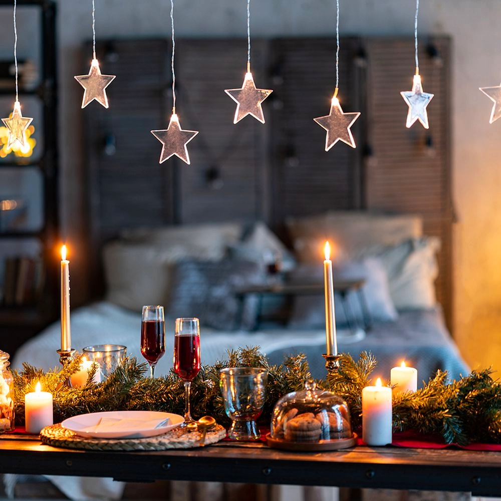 Эти новогодние звездочки, словно сияющие льдинки, очаровывают своей холодной и неприступной красотой. Создается впечатление, что огоньки зависли в воздухе - такая гирлянда смотрится эффектно на любых предметах интерьера.
