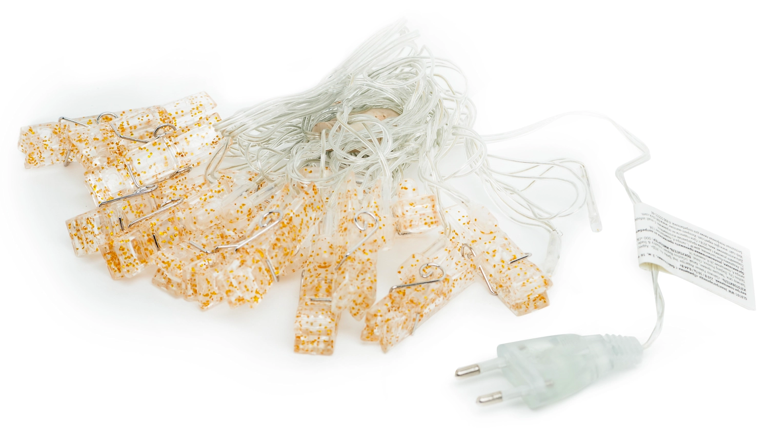 Гирлянда внутренняя Прищепки с блестками 16хLED теплый белый 3 м