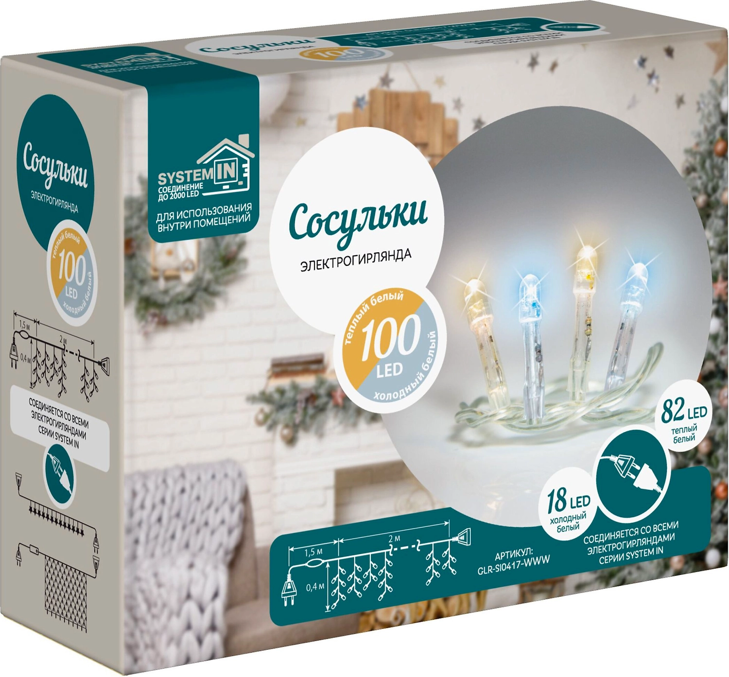 Гирлянда занавес Glos 100 LED теплый и холодный белый 2 м