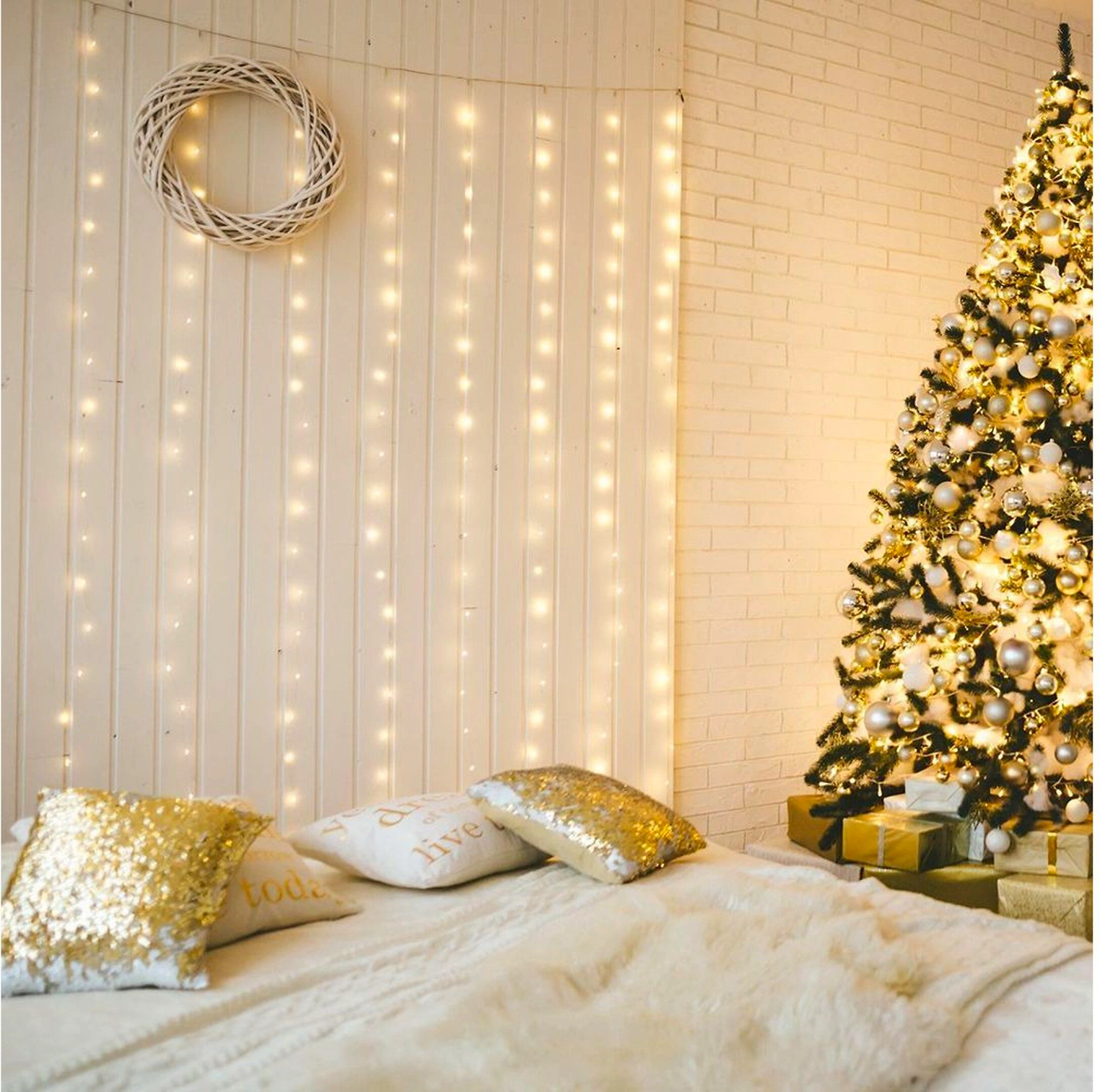 Гирлянда Занавес мерцающий 2х1,5 м - световая завеса для украшения окон, балконов, стен. 300 светодиодов излучают теплый белый свет, приятный и безопасный для глаз.