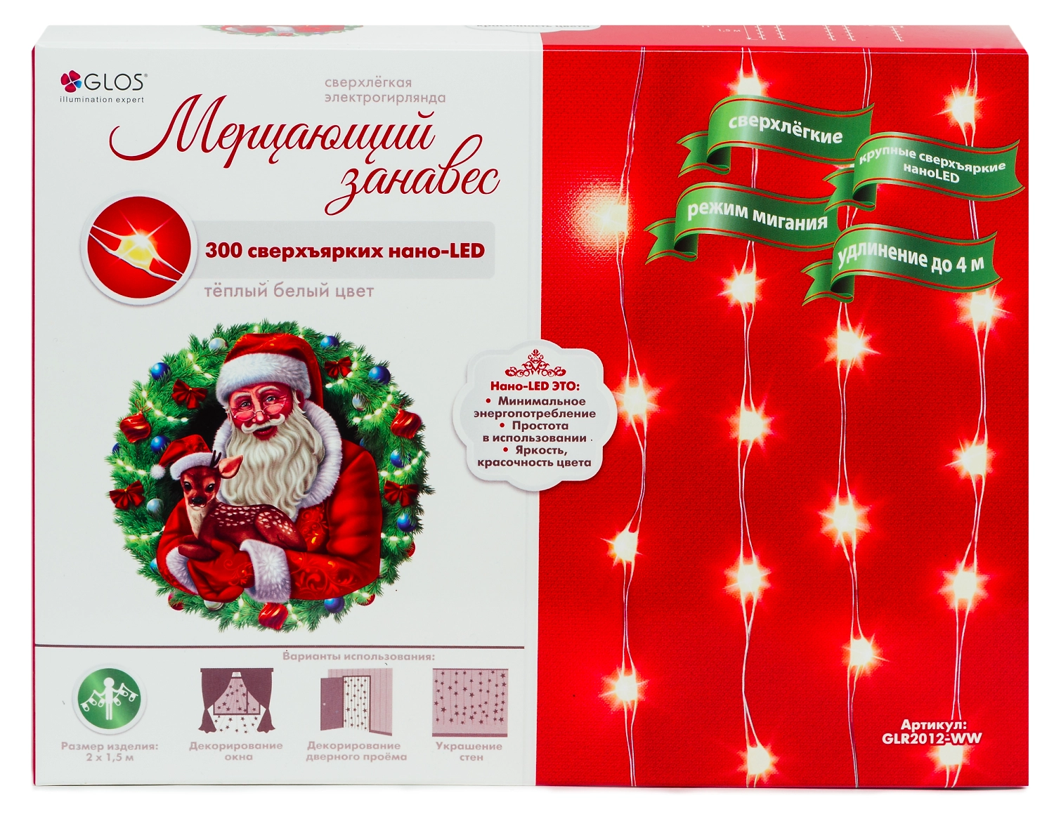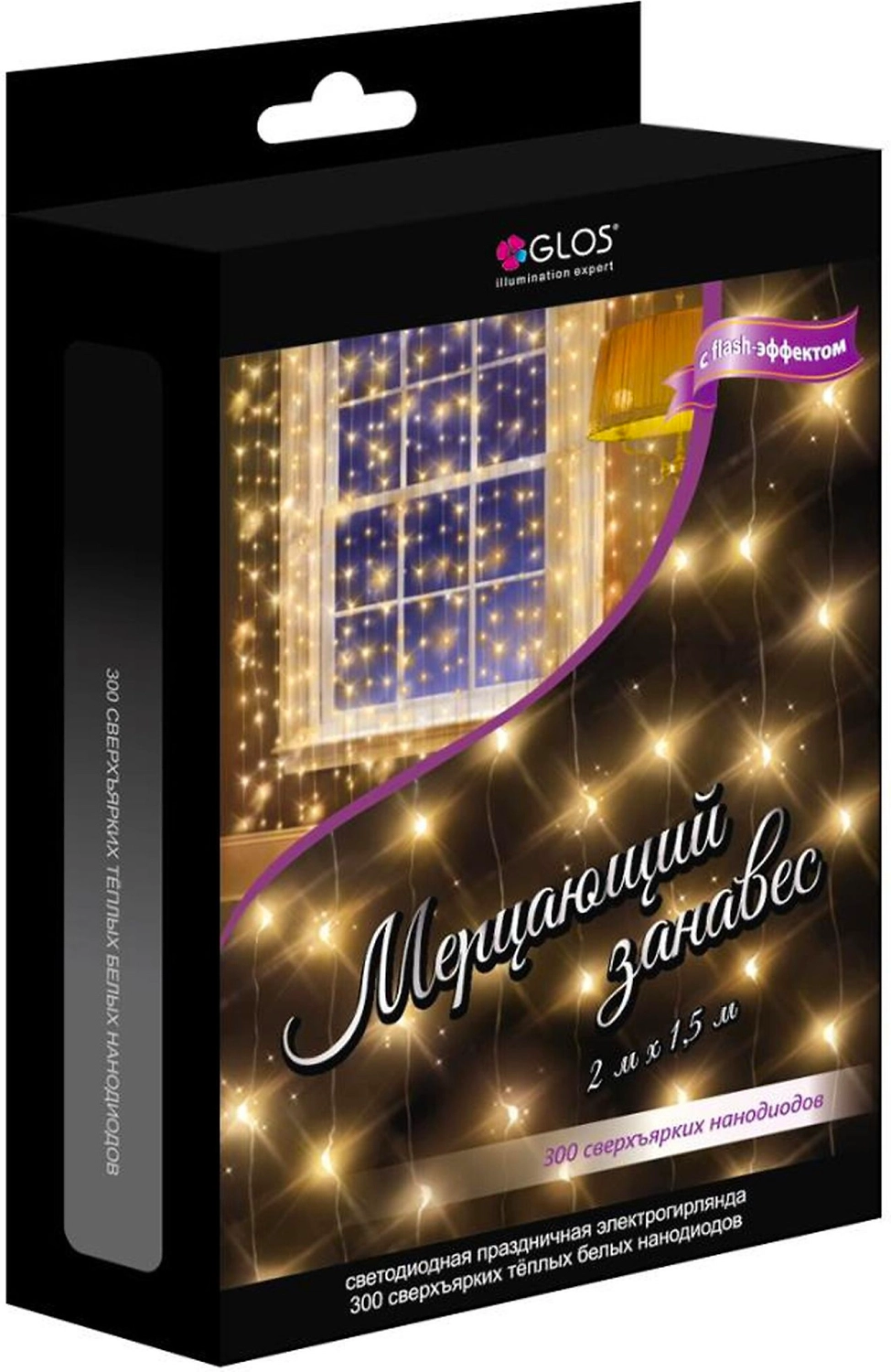 Гирлянда занавес Glos 300 LED теплый белый 2х1,5 м