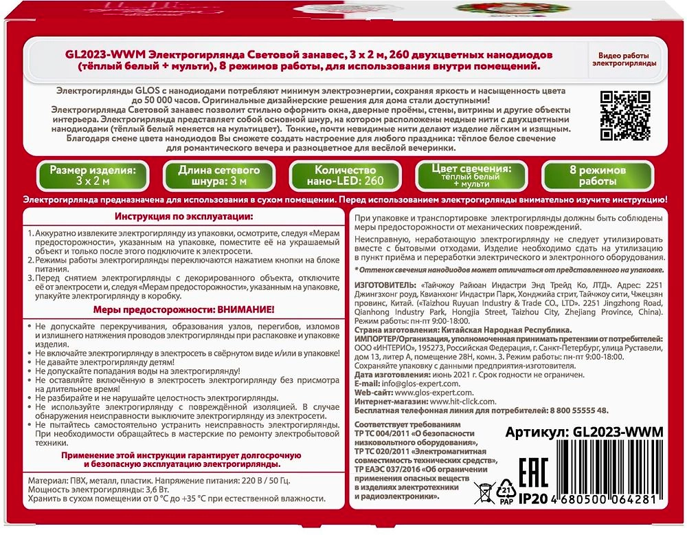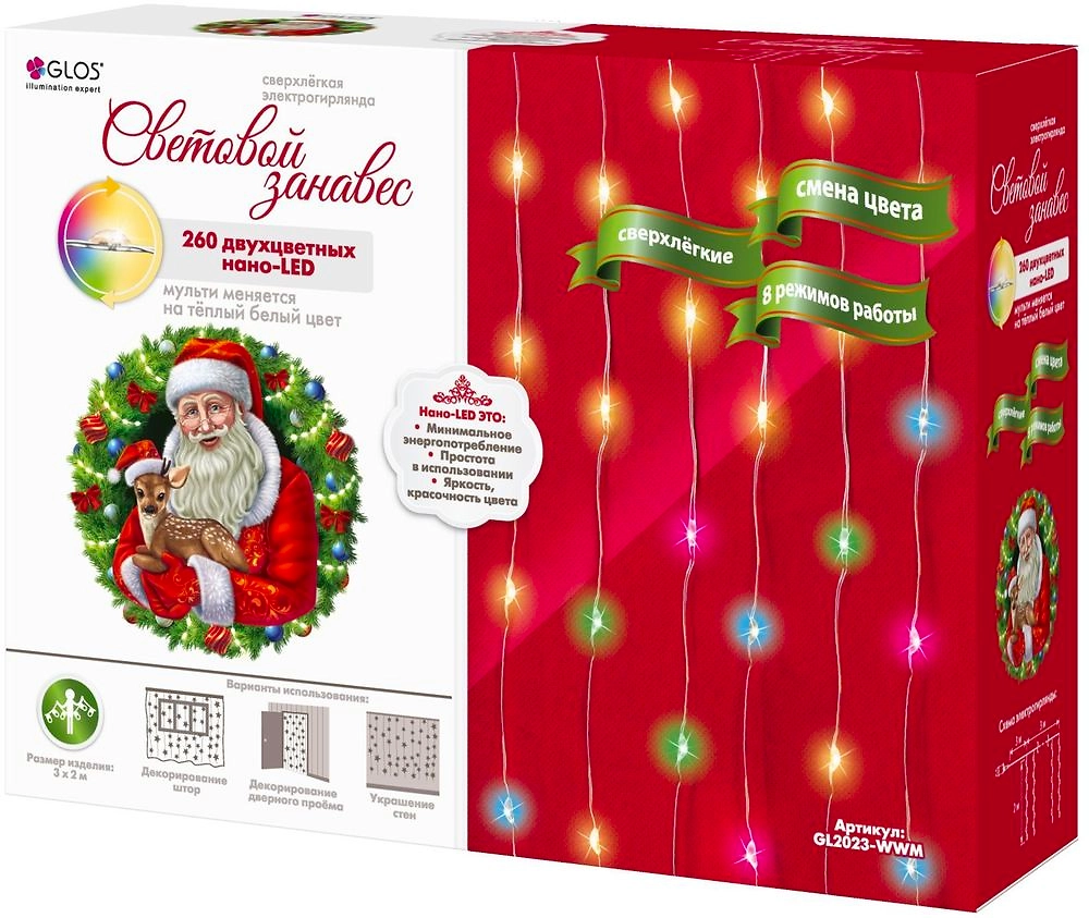 Гирлянда занавес Glos белый/мультиколор 3х2 м