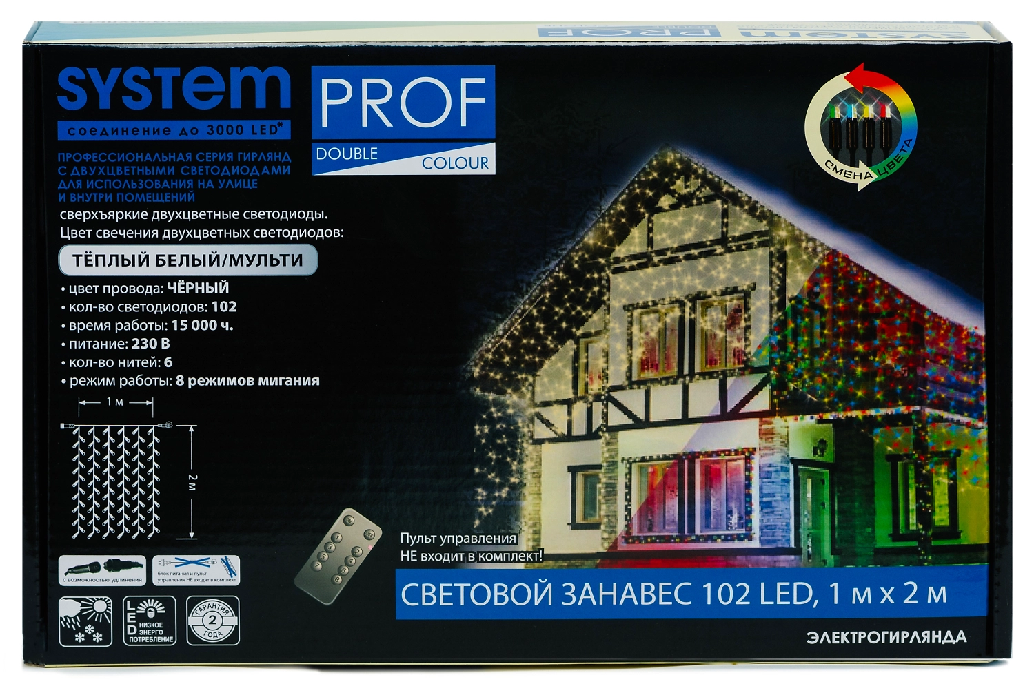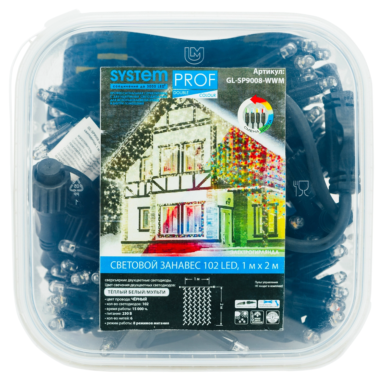 Гирлянда занавес Glos теплый белый + мультиколор 1х2 м