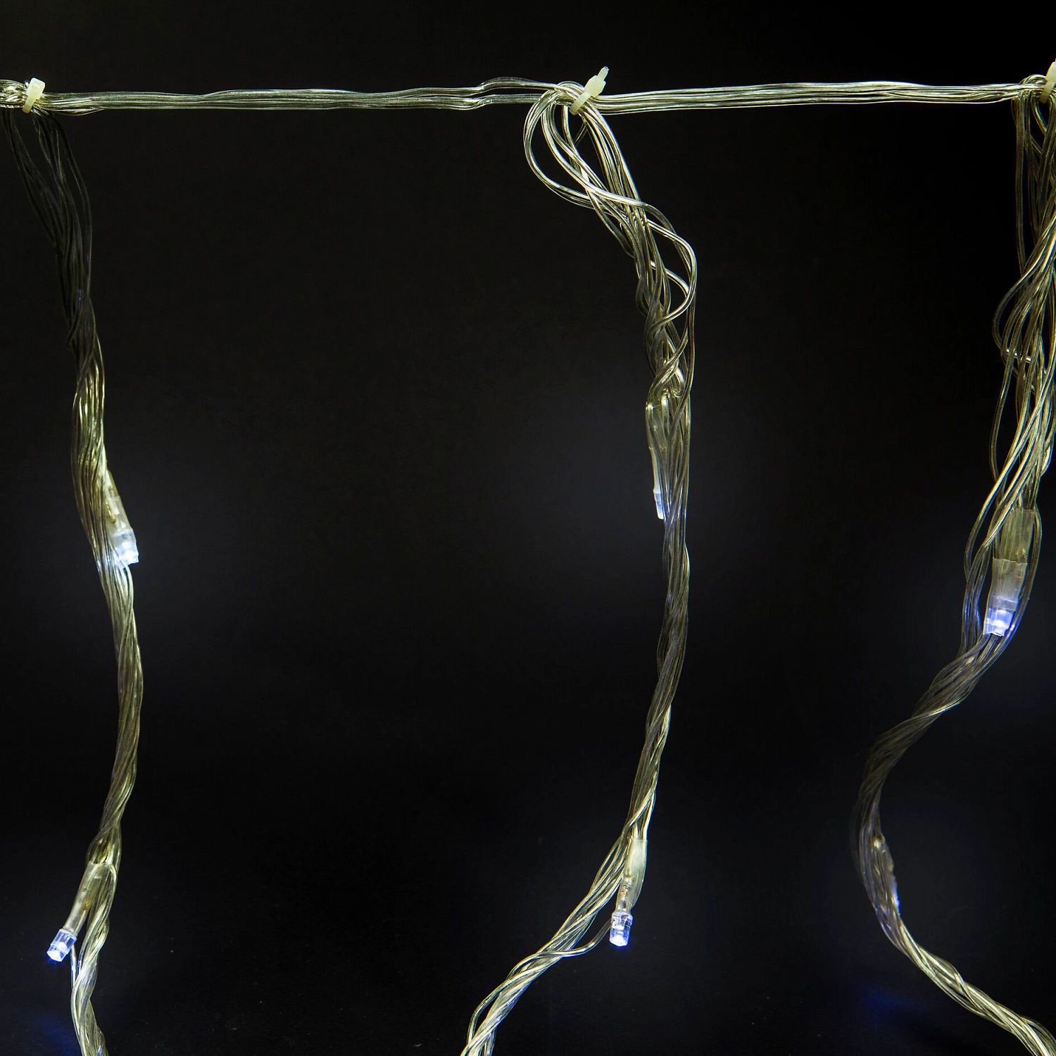 Гирлянда внутренняя Занавес Водопад состоит из длинных нитей, на которых расположены белые светодиоды.