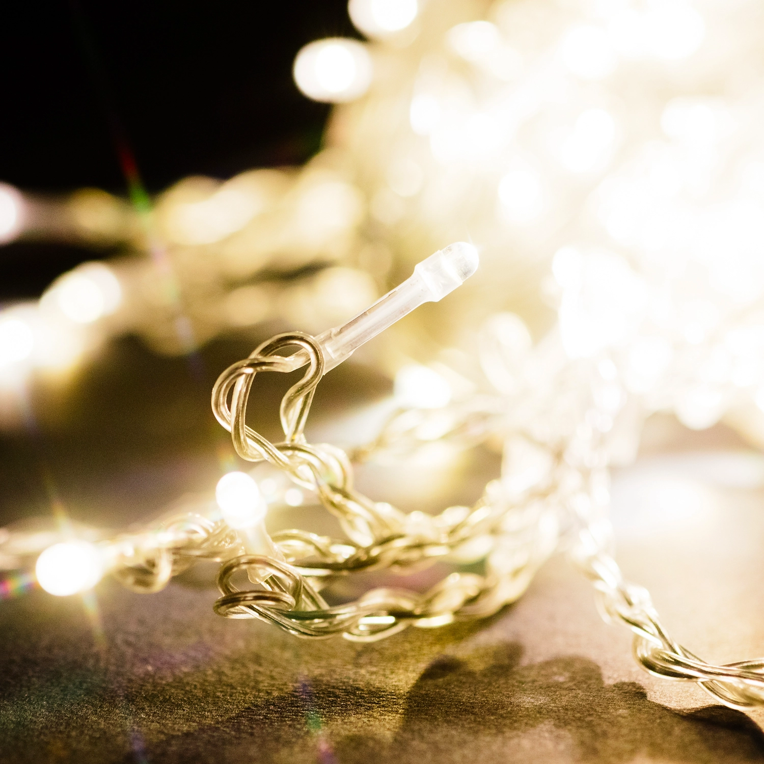 - Прозрачные провода гирлянды создают эффект парящих в воздухе огоньков.