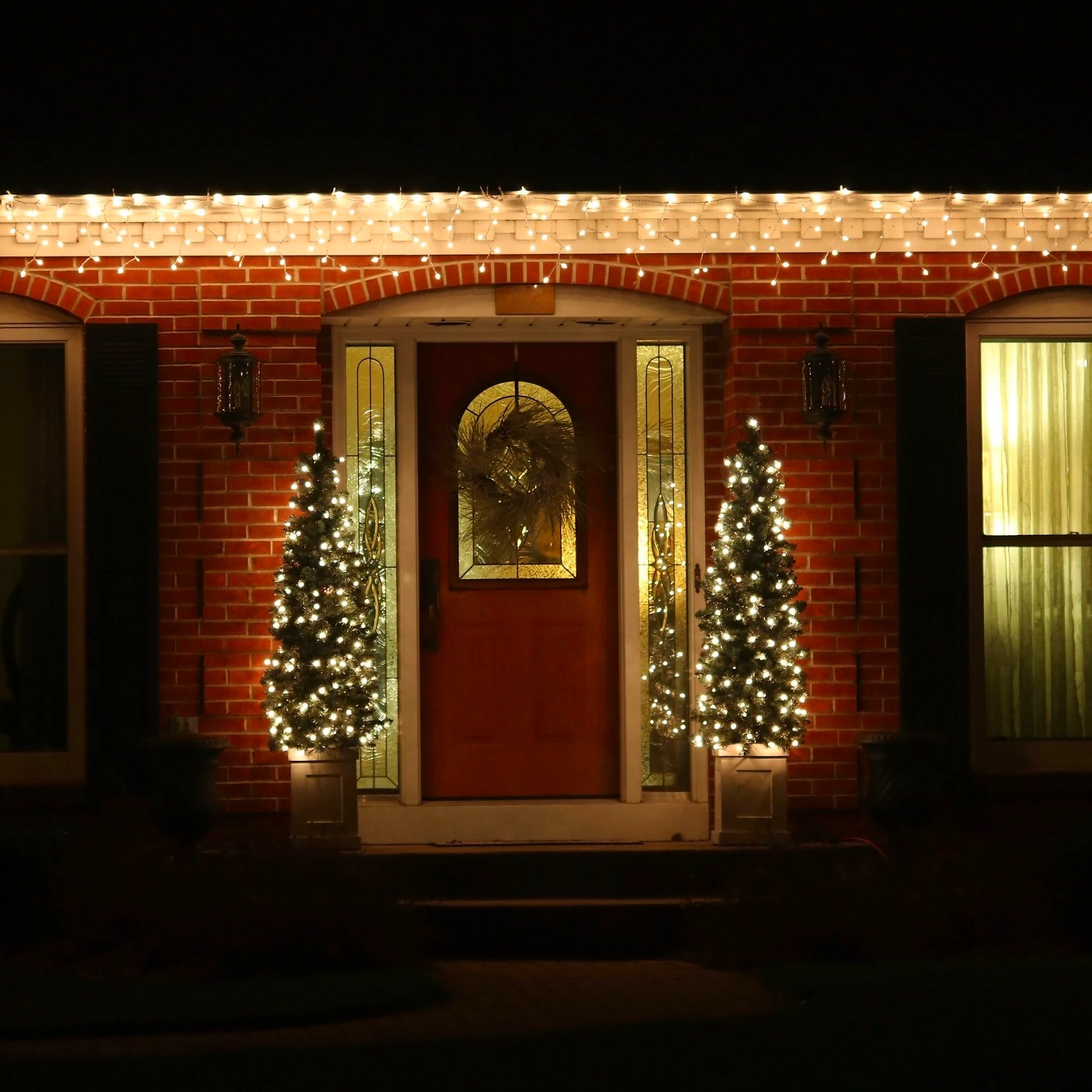 Универсальный осветительный элемент подходит для помещения и улицы. Эта возможность значительно расширяет область применения гирлянды, что позволяет создавать эффектные декорации к любому празднику. Электрогирлянда будет хорошо смотреться на окнах, в дверных проемах, на стенах фасадов зданий или для оформления дверной группы.