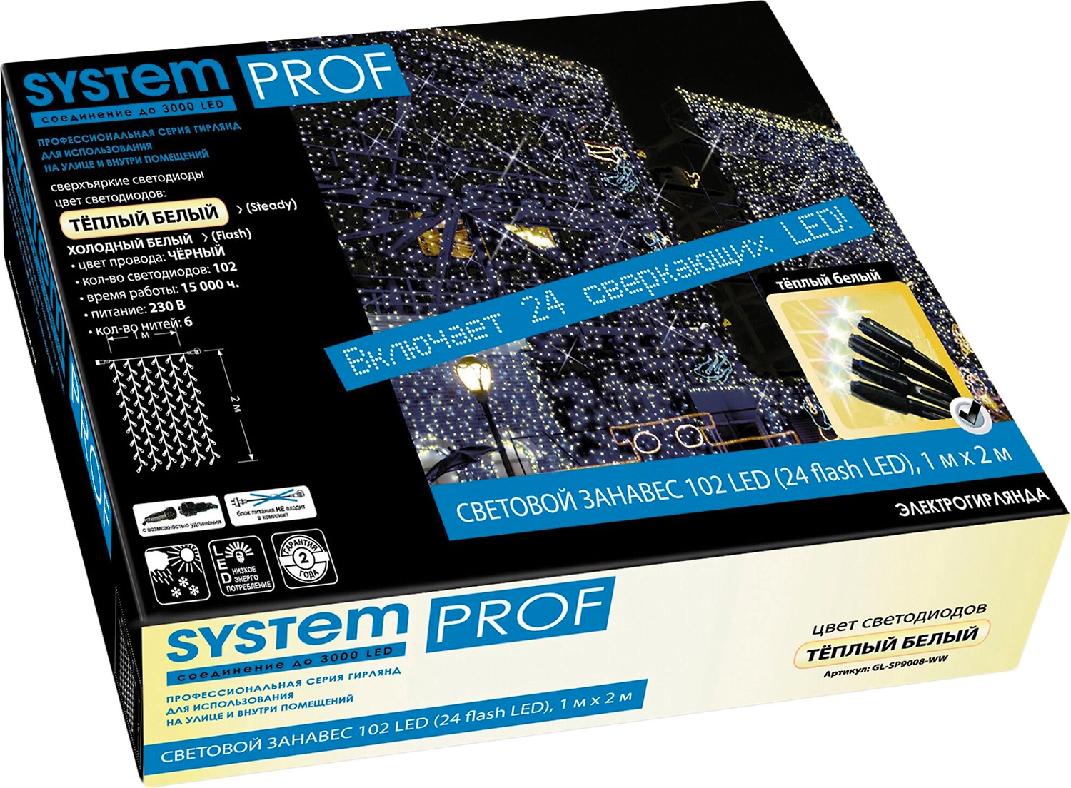 Гирлянда занавес SYSTEM PROF 102 LED холодный белый, теплый белый 1 м