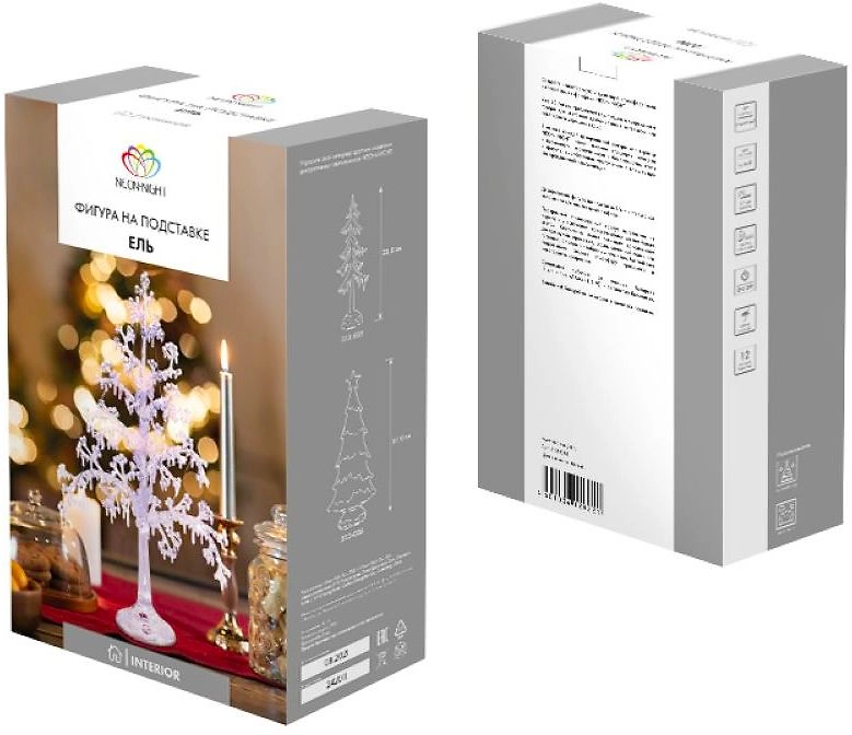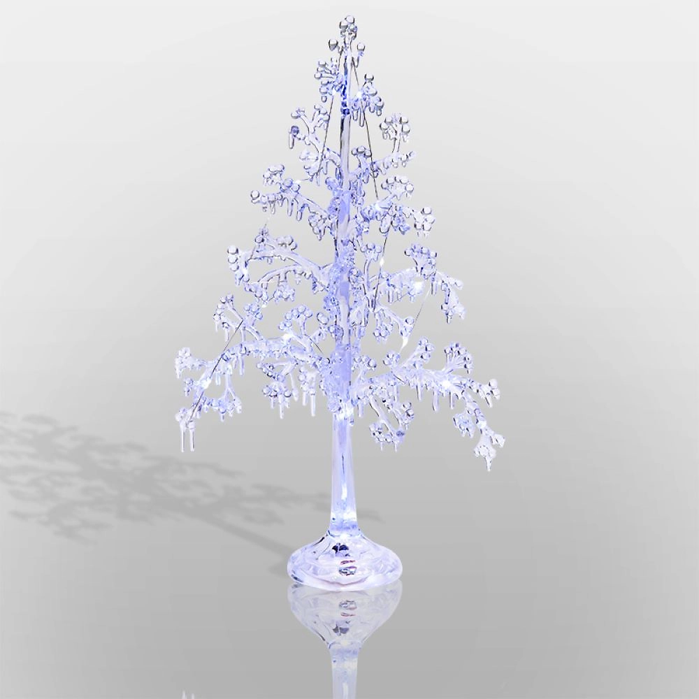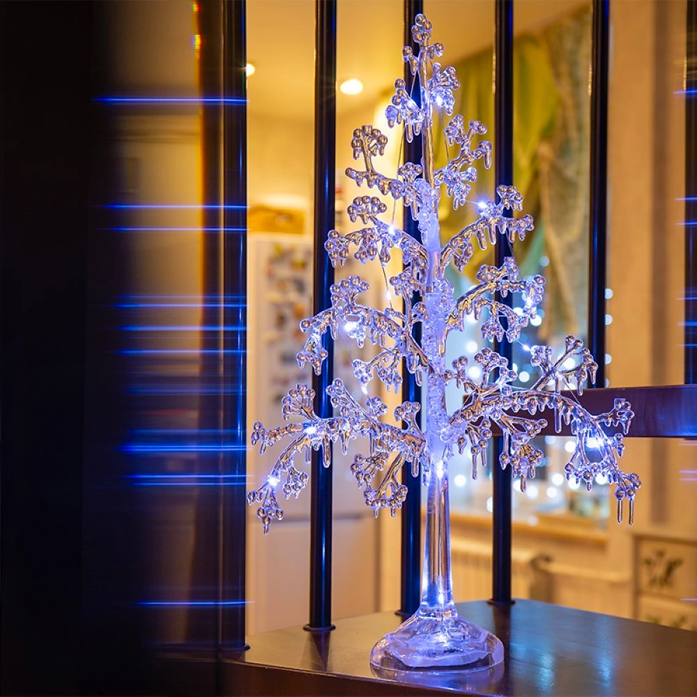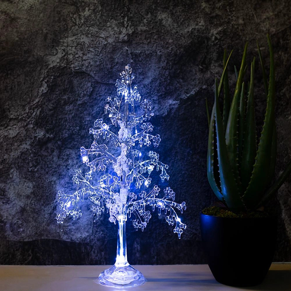 Фигура на подставке «Ель» высотой 51 см — интересный вариант для оформления интерьера, который поможет ощутить зимнюю сказку и приближение самого любимого праздника в году. Раскидистое новогоднее дерево выполнено из прозрачного пластика. Детализированные ветки эффектно подсвечиваются 15 диодами, излучающими белый свет нейтрального оттенка. Изделие работает от 3 батареек типа ААА. Независимость от электрической розетки открывает широкие возможности для создания оригинальных декоративных композиций.