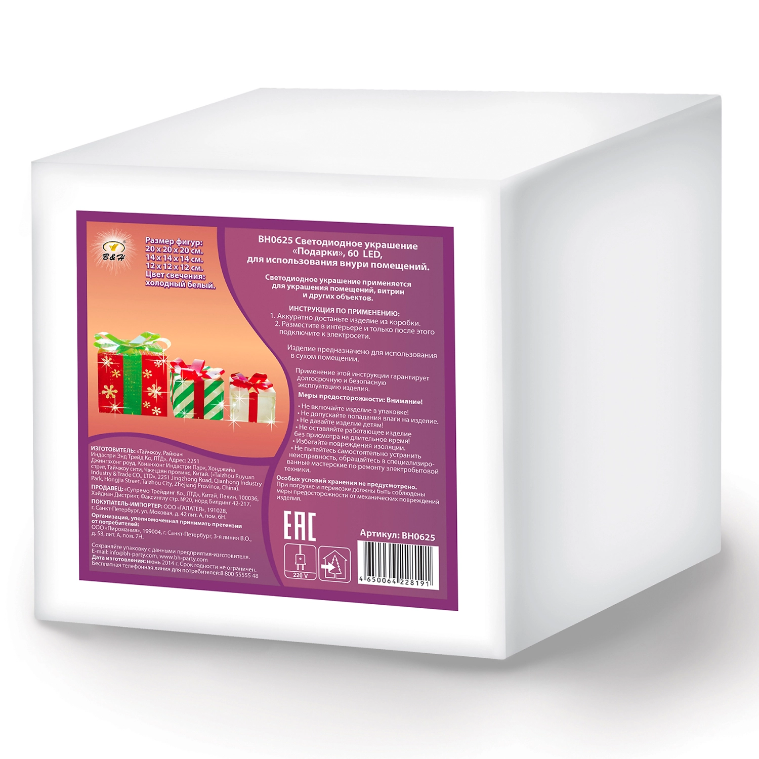 Фигура внутренняя Подарки 60хLED 20х20х20 см холодный белый