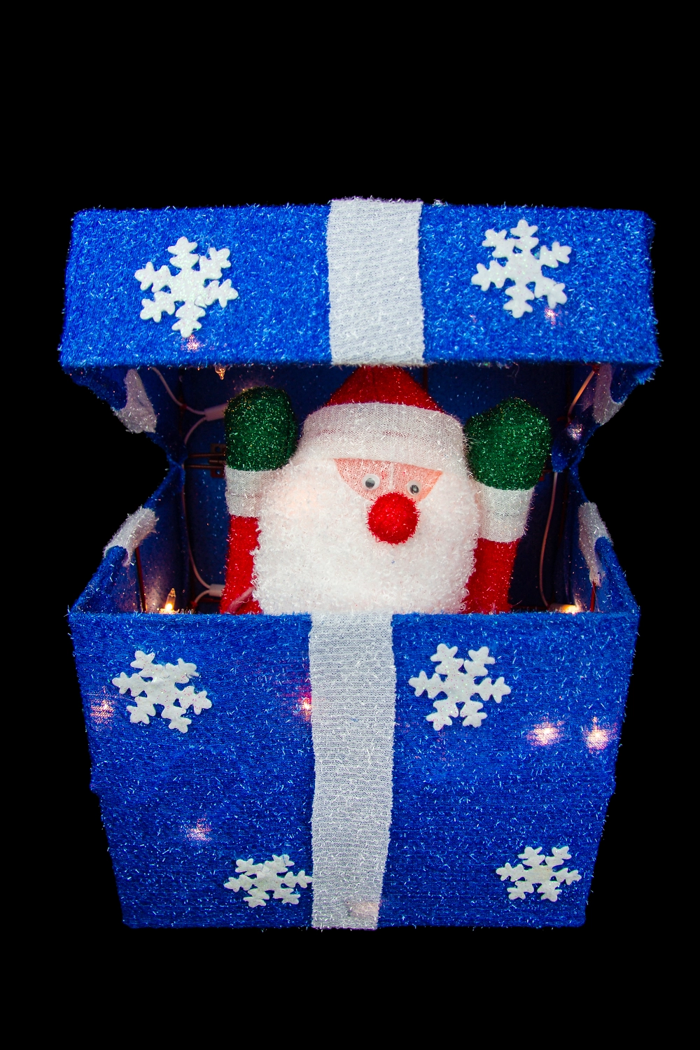 Двигающаяся фигура Подарок с Дедом Морозом - коробка с новогодним дизайном, из которой при открытии появляется светящийся Дед Мороз.