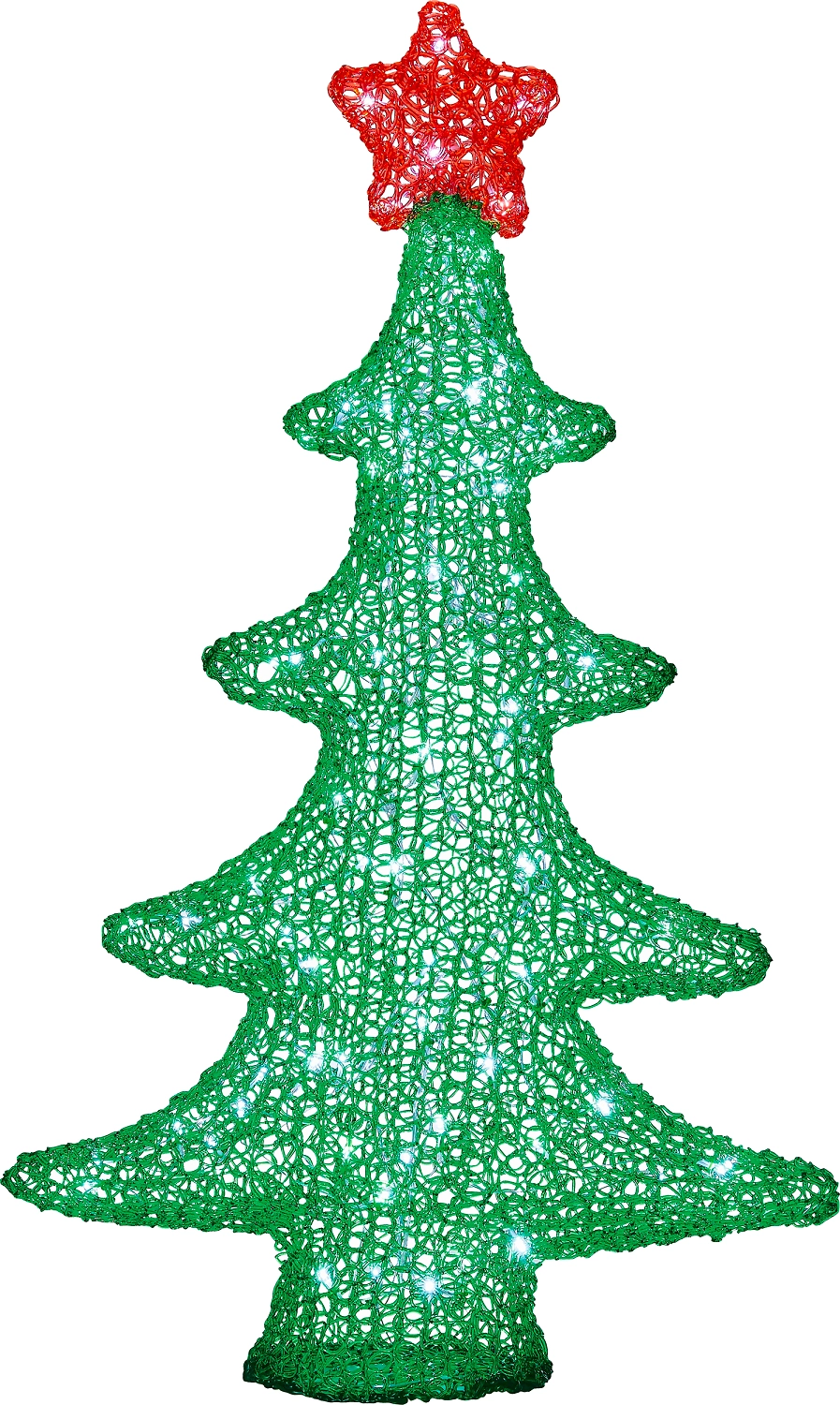 Фигура Ель - декоративный осветительный прибор для оформления интерьера и ландшафтного дизайна. Ажурный корпус изготовлен из цветного акрила. 80 белых светодиодов размещены на надежном медном проводе.