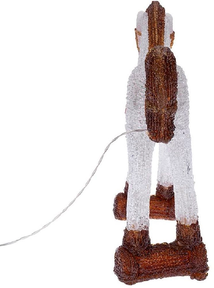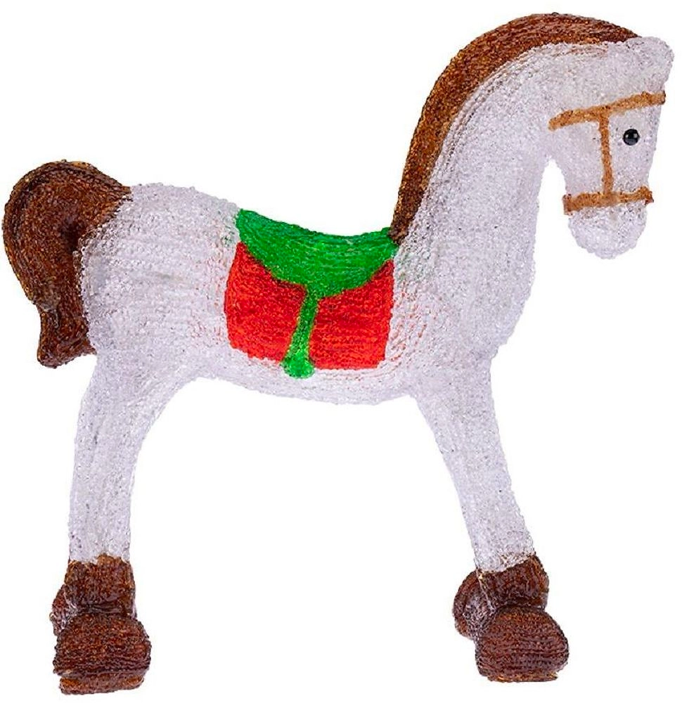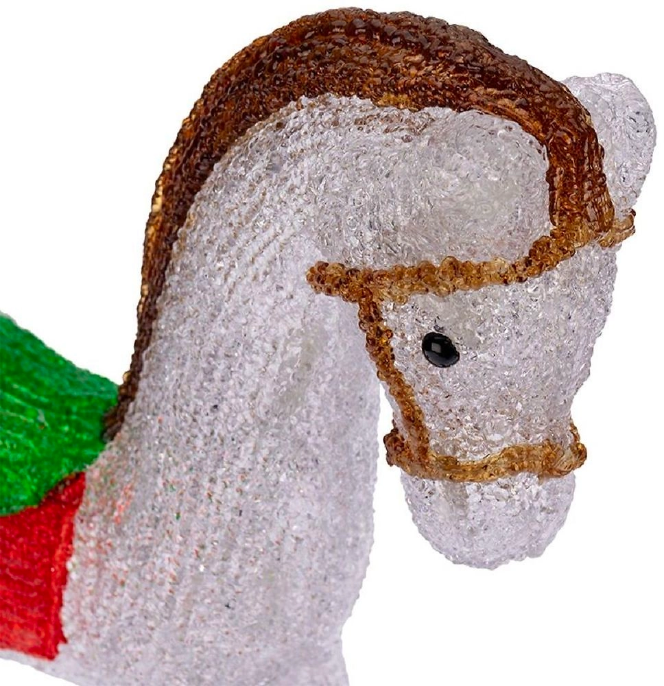Акриловая фигура "Лошадка" высотой 38 см светится 60 яркими диодами, которые излучают белый свет, мягко обрамляя контуры и создавая объемный эффект. Реалистичное цветовое оформление, фактурная поверхность, яркая подсветка - все это делает фигурку великолепным декором, который понравится и взрослым, и детям. Защита IP65 позволяет использовать изделие как дома, так и на улице при сложных погодных условиях. Понижающий трансформатор, идущий в комплекте, обеспечивает безопасную и стабильную работу от стандартной электросети 230 Вольт.