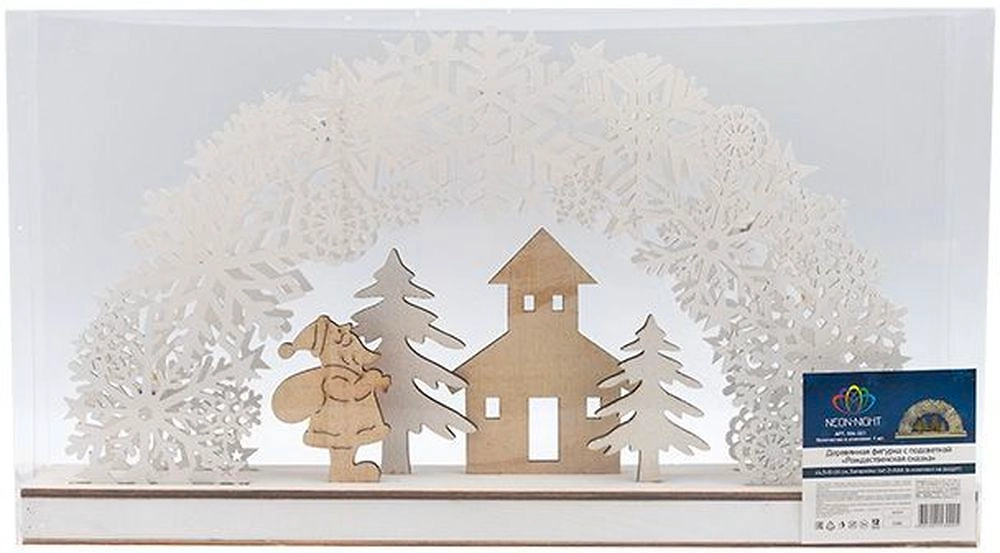 Деревянная игрушка со светодиодной подсветкой на батарейках. Теплое свечение и деревянное обрамление фигуры создаст уютную атмосферу и подарит ощущение праздника.