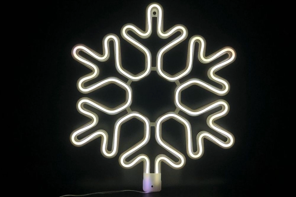 Фигура из сетевого шнура неон-лайт "Снежинка"40 см. 480 белых светодиода. Сетевой провод 1,5 метра. Для использования на улице и внутри помещения.