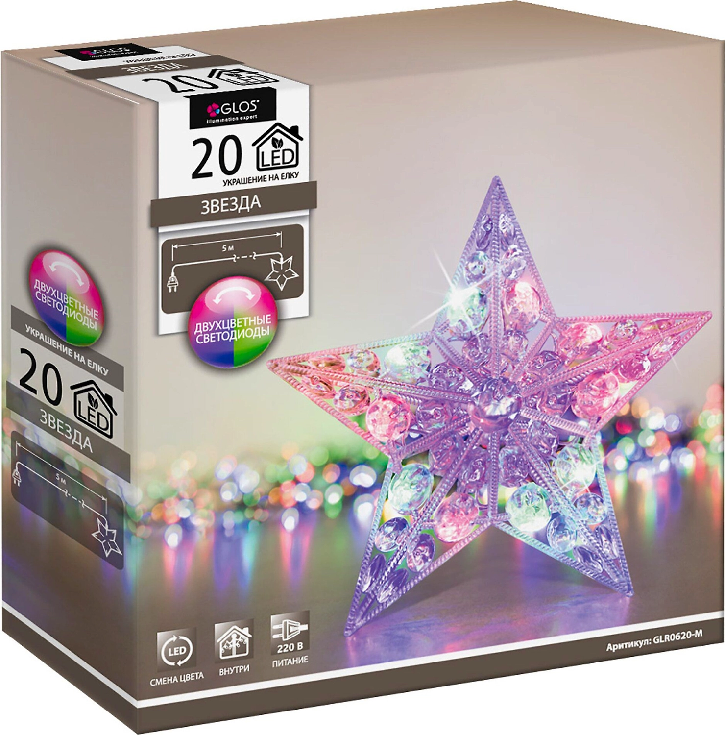Фигура световая Звезда предназначена для декорирования новогодней елки, установленной в помещении. Двухцветные светодиоды делают ее красочной и эффектной.
