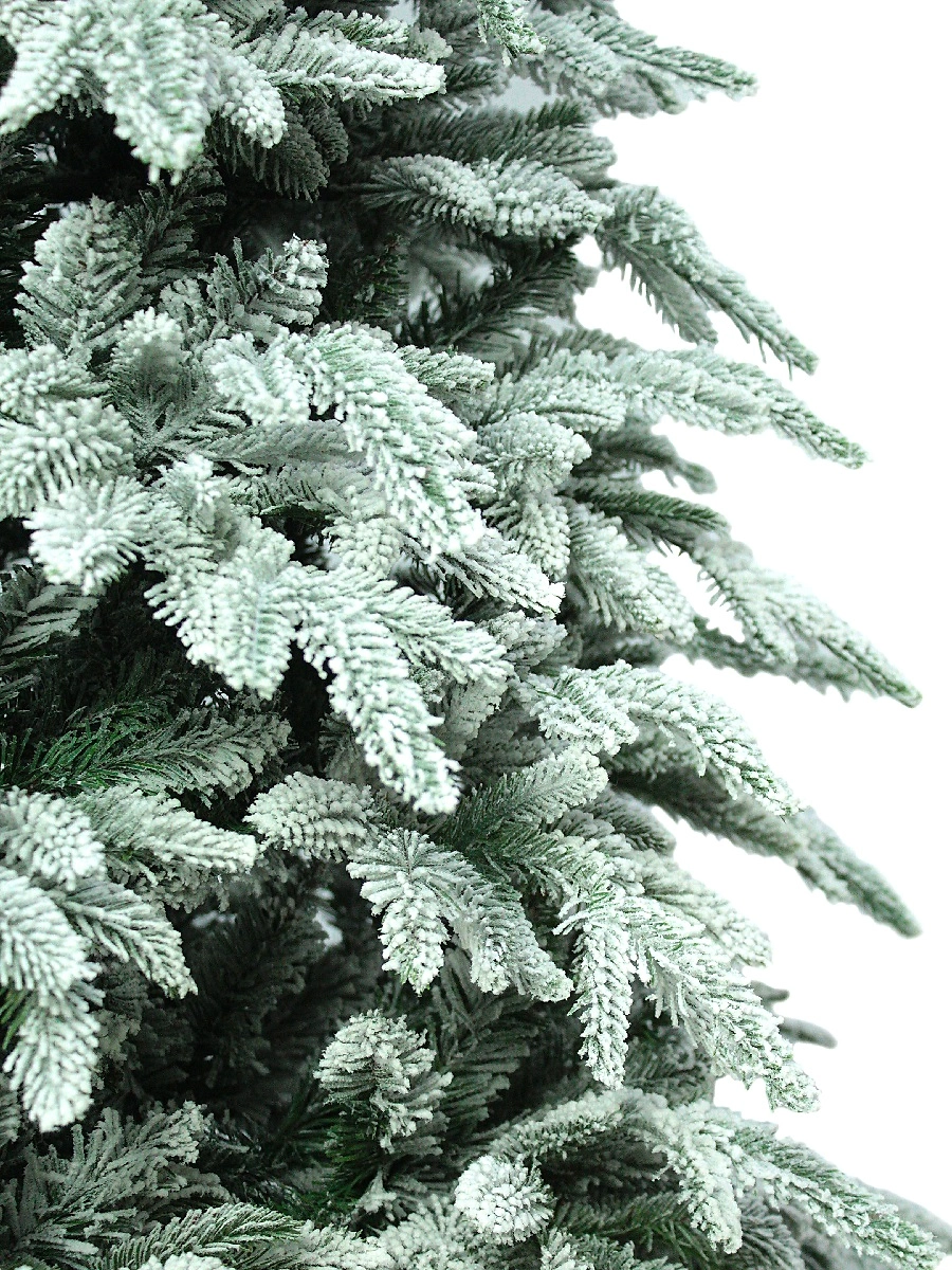 POLARIS - это пышная новогодняя ель с густой кроной и большим количеством веточек, которые обильно покрыты снегом (белое напыление - флок).