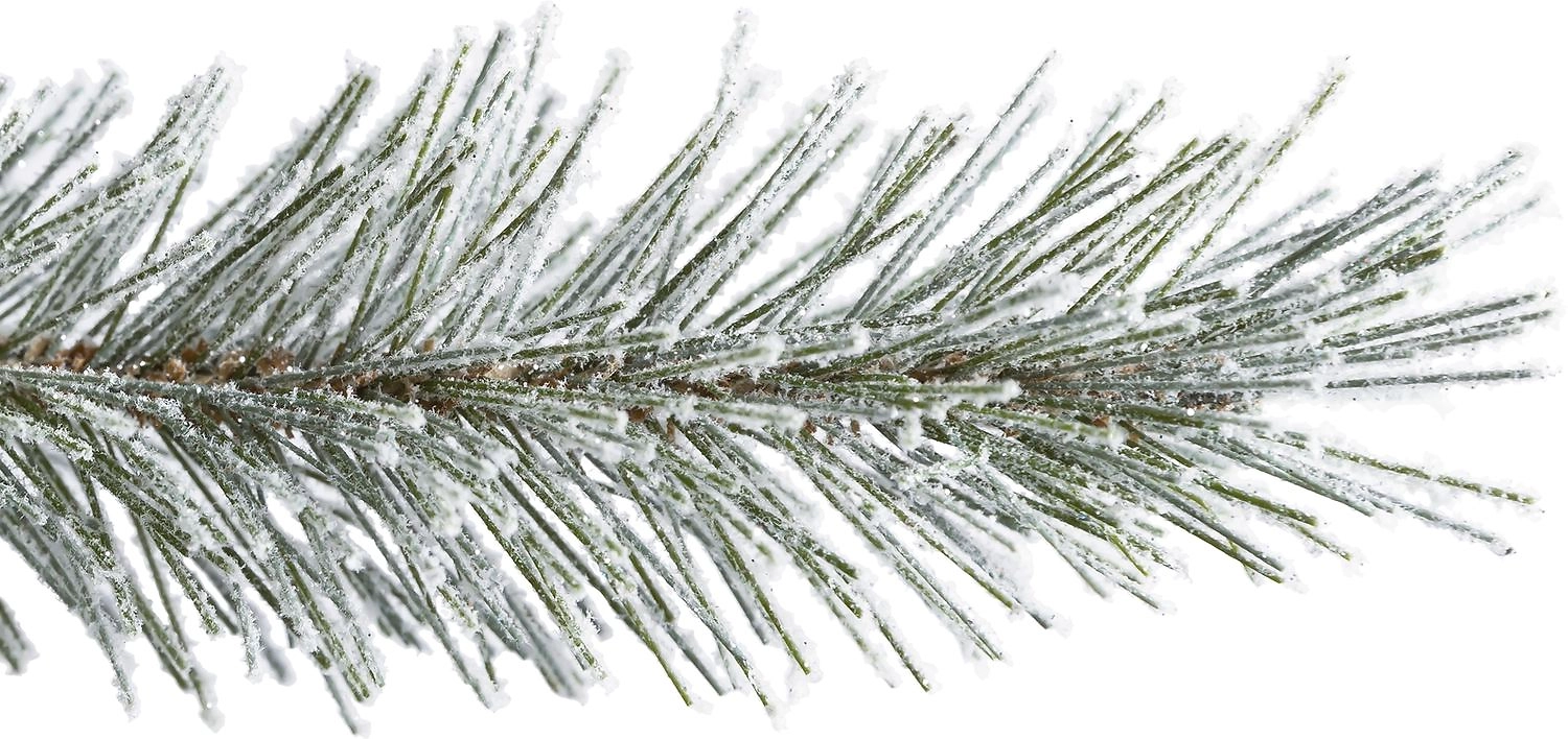 - Темно-зеленый цвет хвои с просвечивающей сквозь иголки корой и сужающиеся к концам веточки обеспечивают качественную имитацию живого дерева.