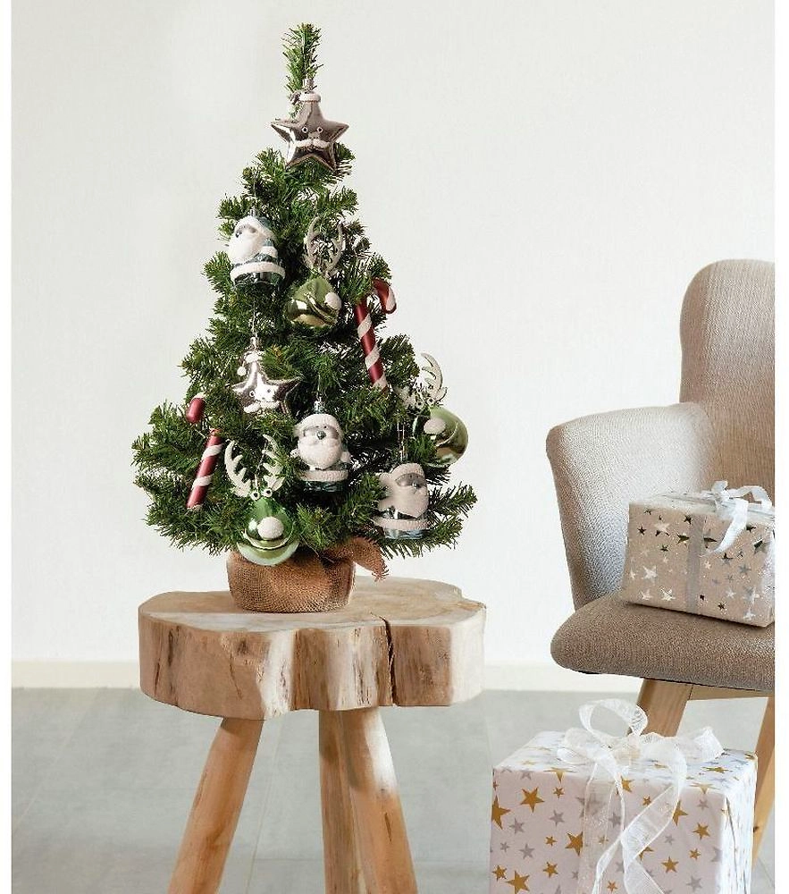 Мини-елка уже украшена игрушками и чтобы декорировать пространство, достаточно просто достать ее из коробки.