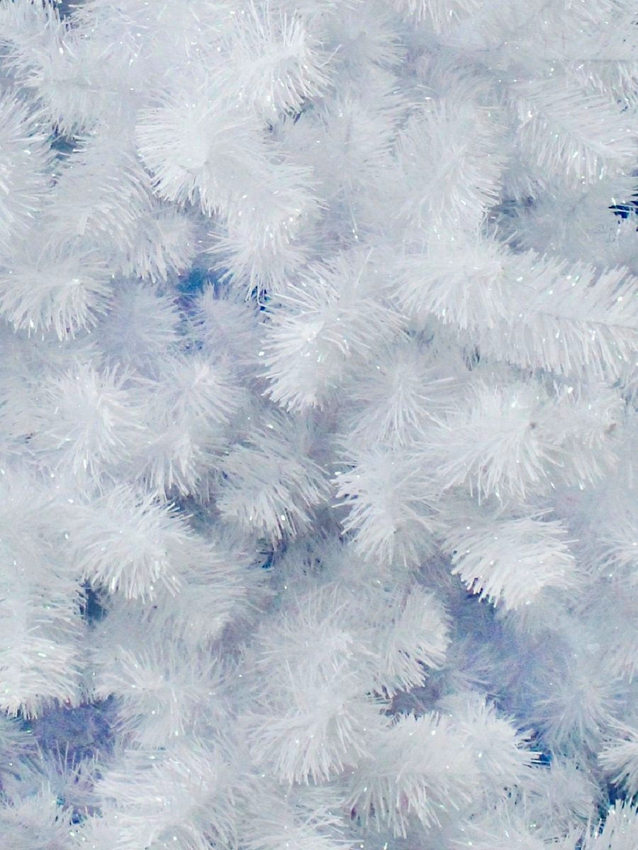 Ослепительно-белая елочка настолько красива, что кажется творением Снежной королевы. Роскошное деревце напоминает о свежести мороза, чистоте льда и сиянии инея.