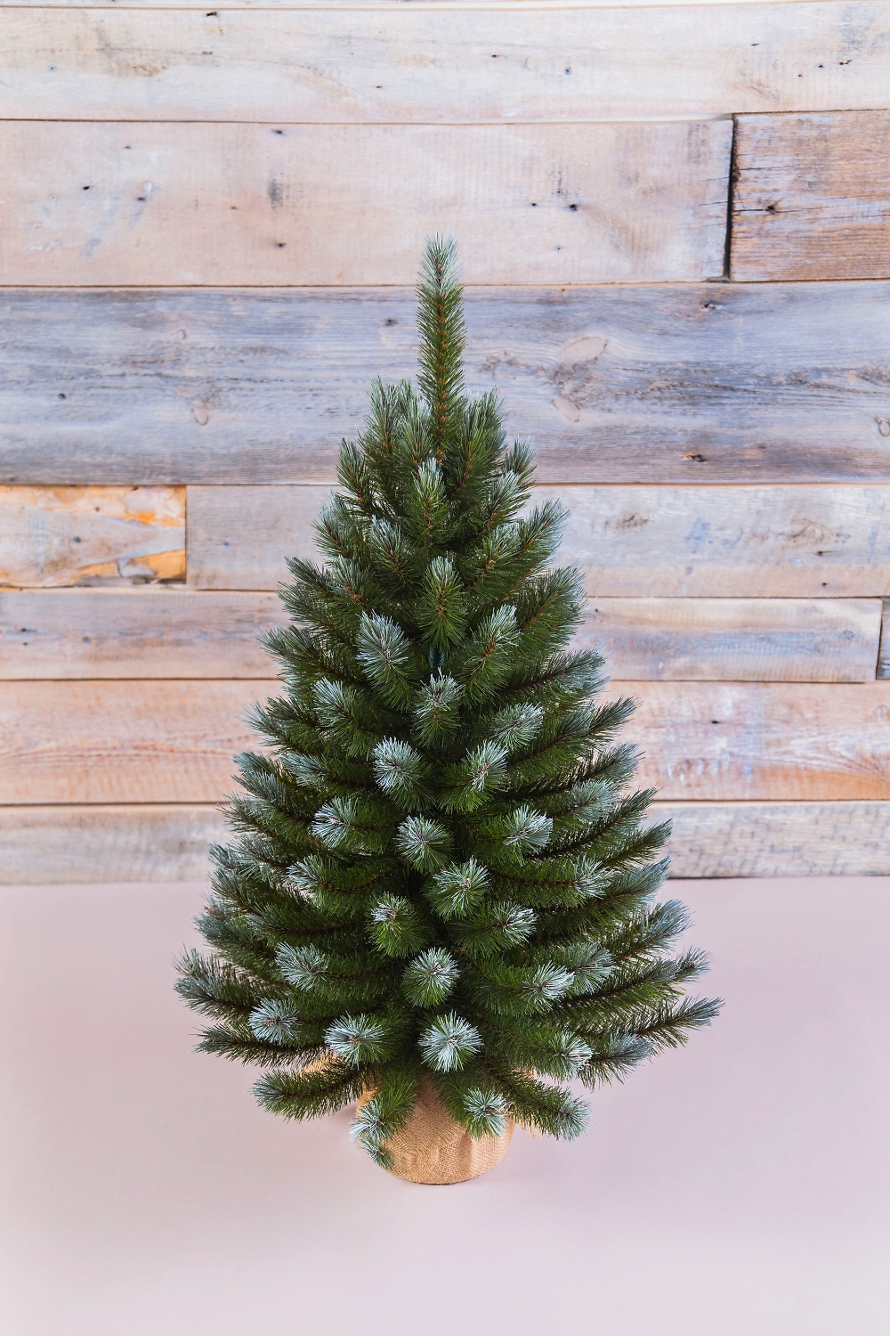 Эта елка - настоящее новогоднее чудо: на вид сложно определить, искусственная она или живая. Зеленая хвоя, пышные ветви, ровный ствол делают деревце роскошным, а интерьер нарядным.