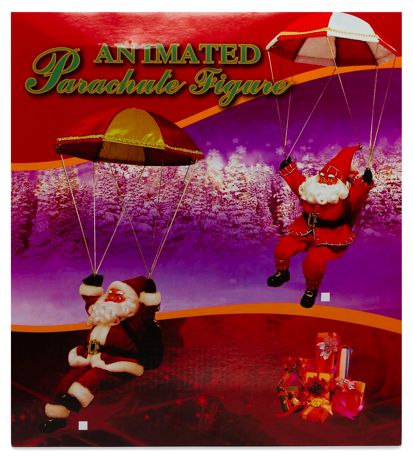 Дед мороз красный интерактивный музыкальный с подарком на парашюте, 61 см.