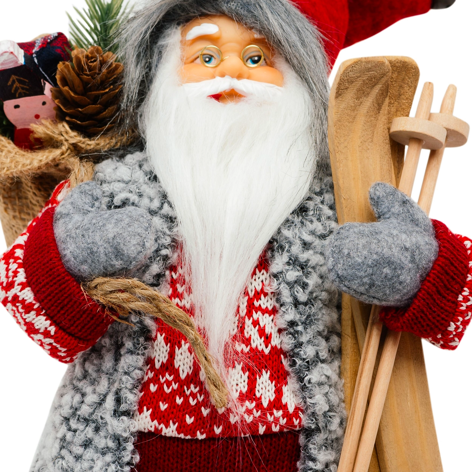 Дед Мороз с лыжами и подарками, 30 см.