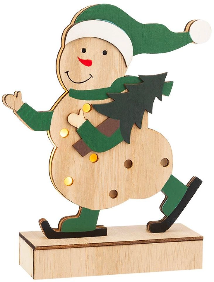 Деревянная фигурка с подсветкой «Снеговик» высотой 18 см выполнена в виде забавного персонажа — одного из главных символов Нового года.
