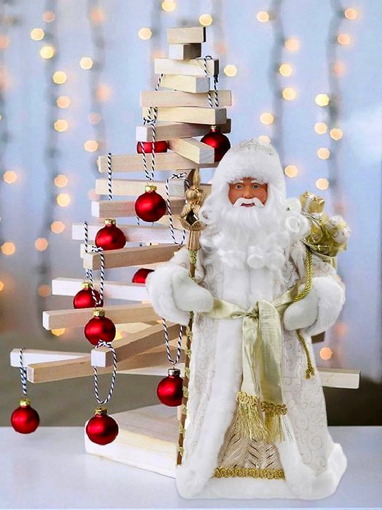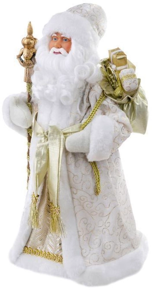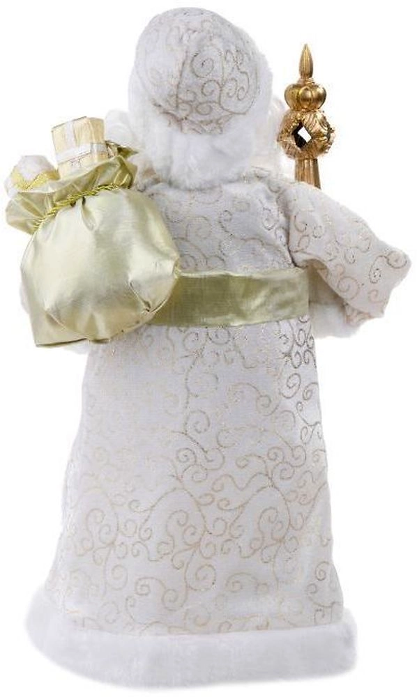 Фигурка Деда Мороза несет в себе волшебство и красоту главного зимнего праздника. Кукла изготовлена из пластика и ткани в бело-золотых цветах.