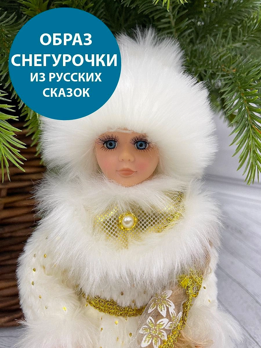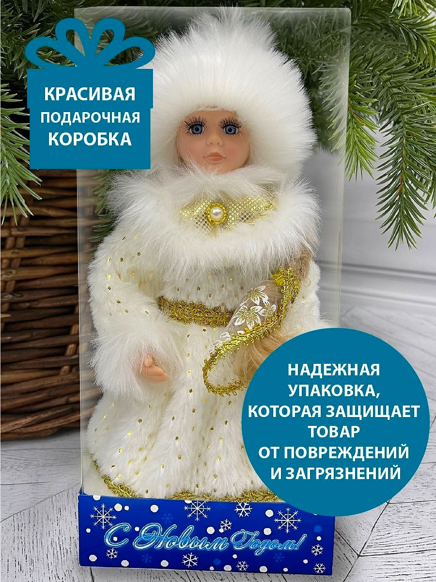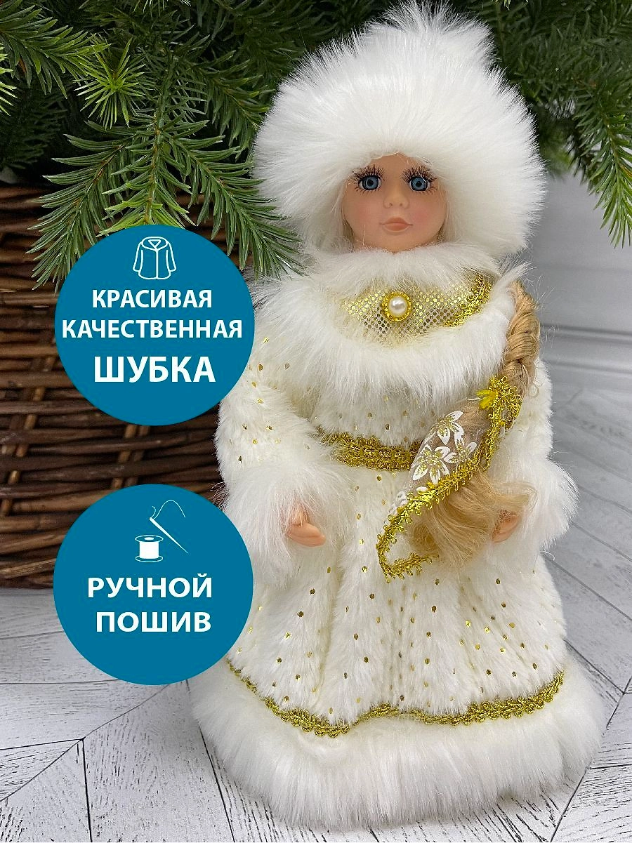 Фигурка под елку Снегурочка в белой с золотом шубе и шапке, 30 см.
