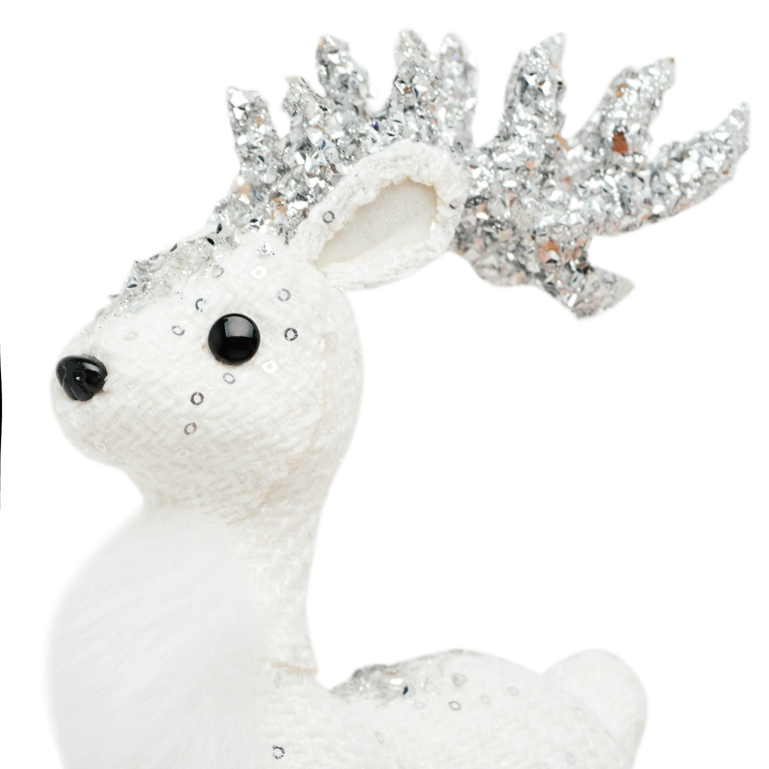 Новогодний Олень стоячий белый с серебрянными рогами 16,5x8x32 см