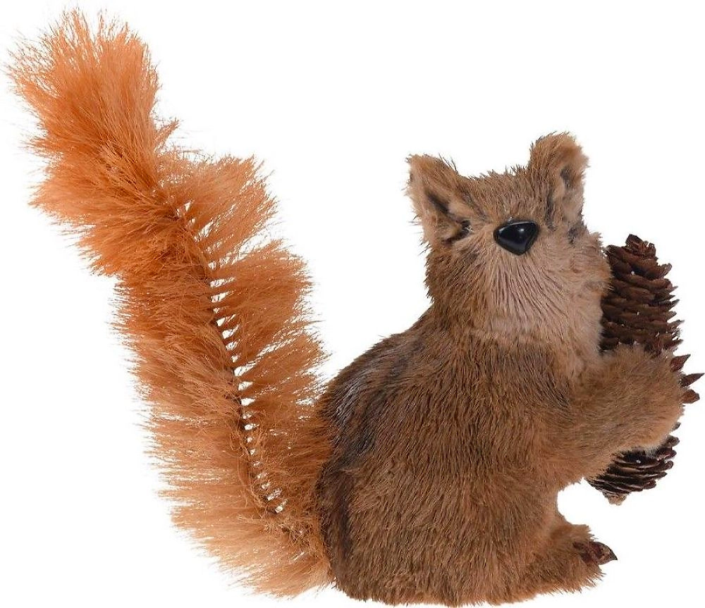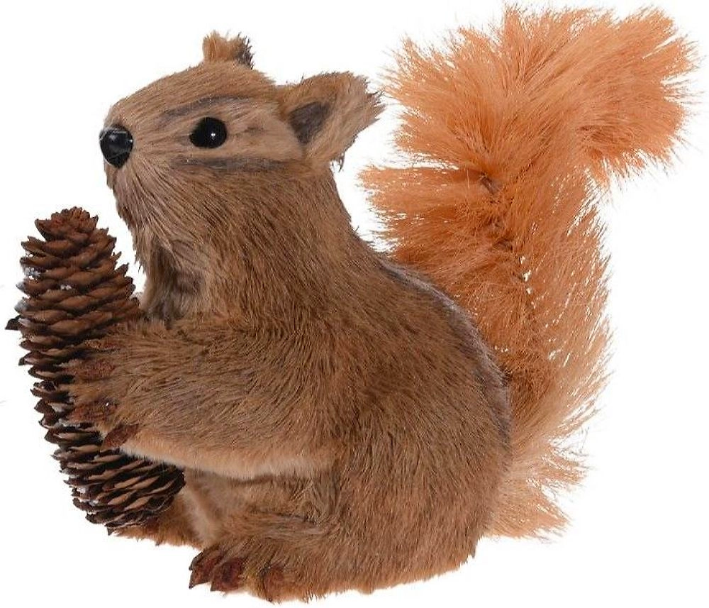 Статуэтка Белка - декоративная фигура из пластика и искусственного меха, изображающая белочку с еловой шишкой в лапах.