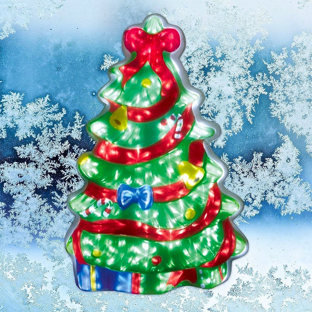 Светодиодное панно Мерцающая елочка сделано из рельефного цветного пластика.