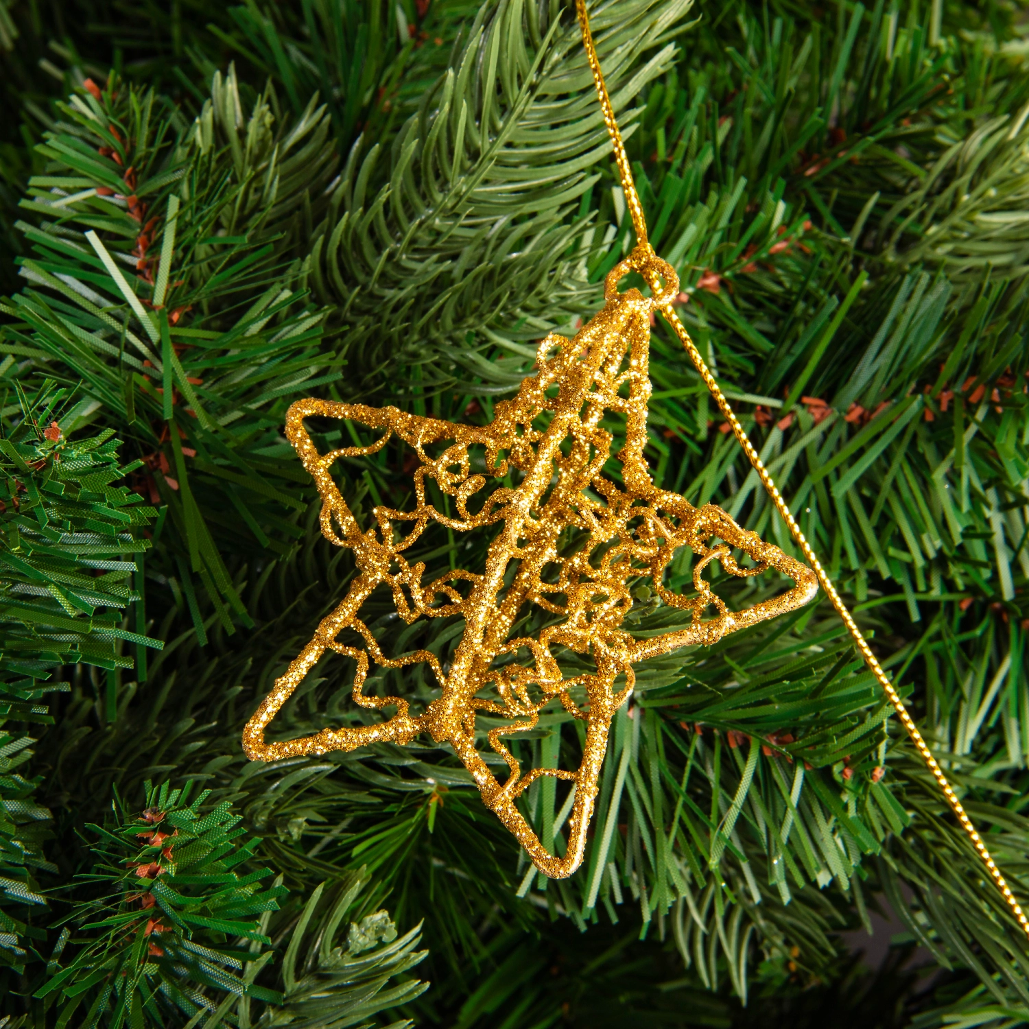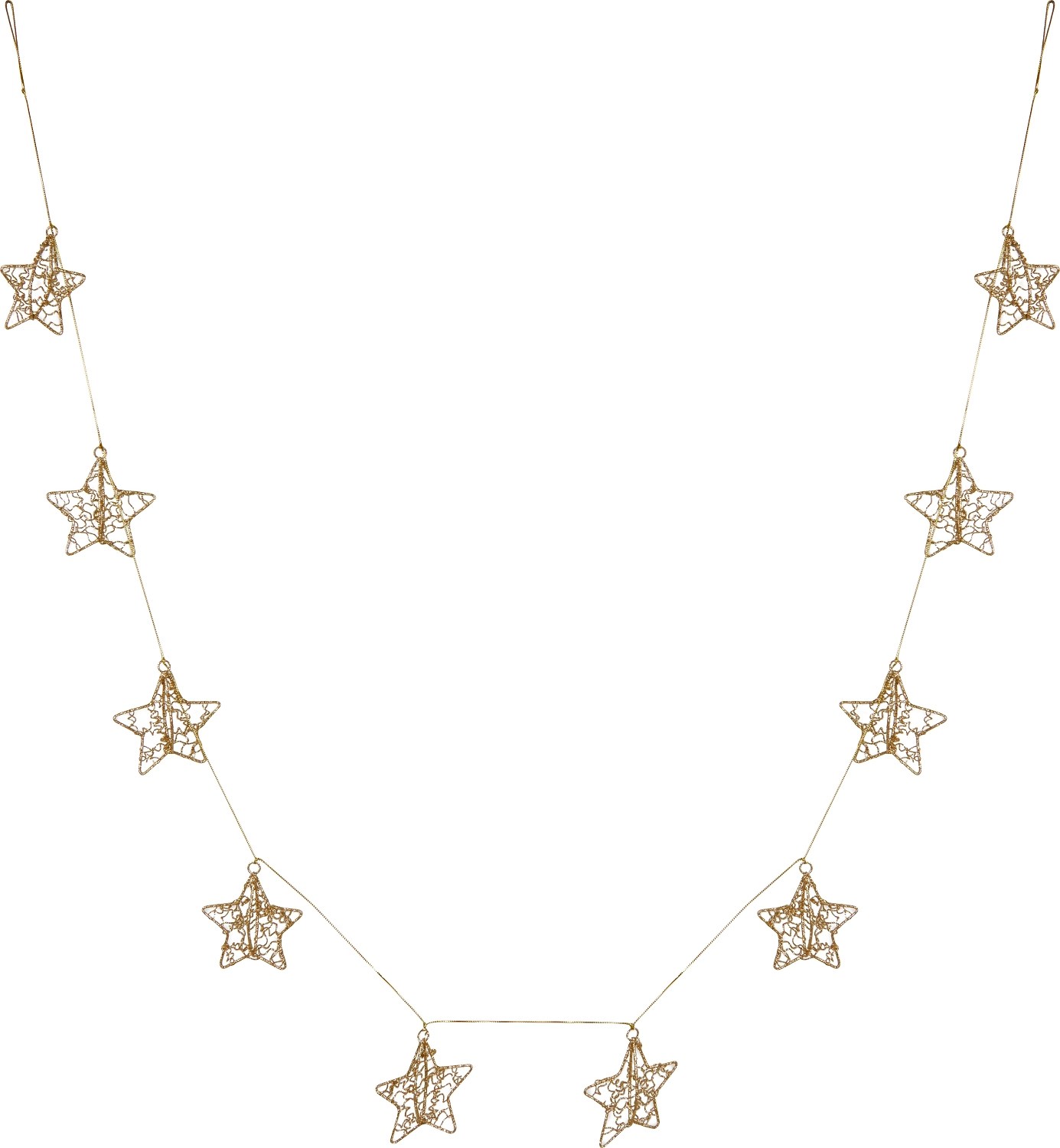 Гирлянда Блестящие звезды 180 см выполнена из металлической проволоки с блестящим напылением. Насыщенный золотистый цвет гармонично сочетается с оттенком хвои.