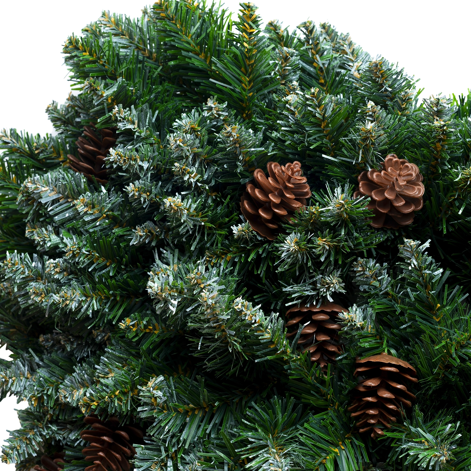 Гирлянда еловая с заостреными белыми кончиками и шишками 180 см