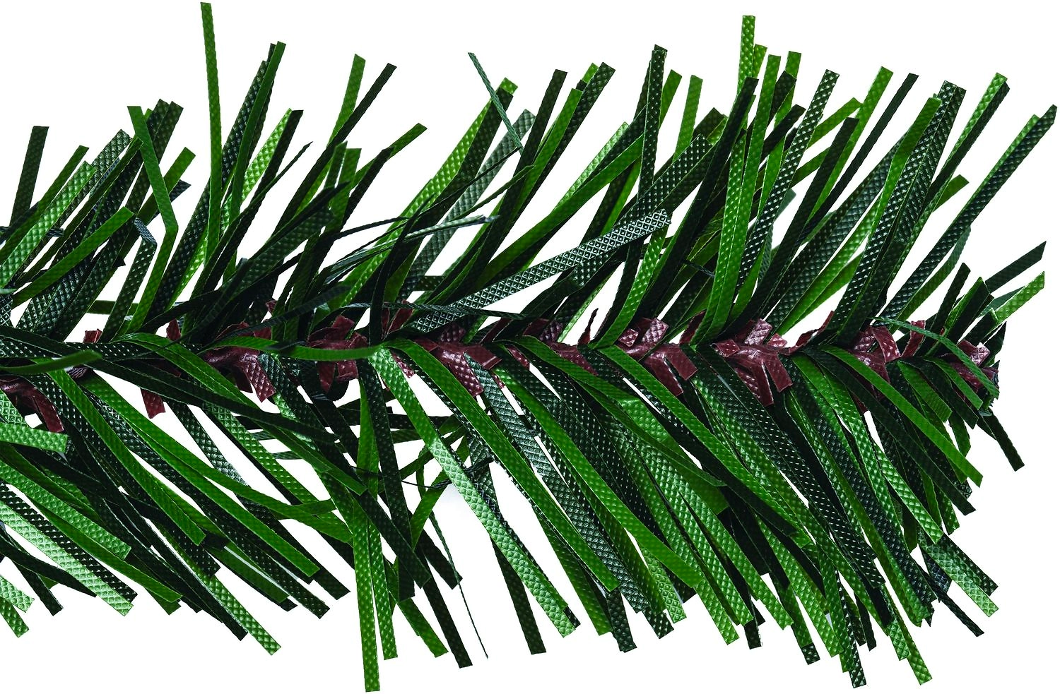 Гирлянда длиной 2,7 м выполнена из поливинилхлорида. Сочетание темно-зеленой хвои и просвечивающей сквозь иголки "древесины" придает украшению сходство с настоящими еловыми веточками.