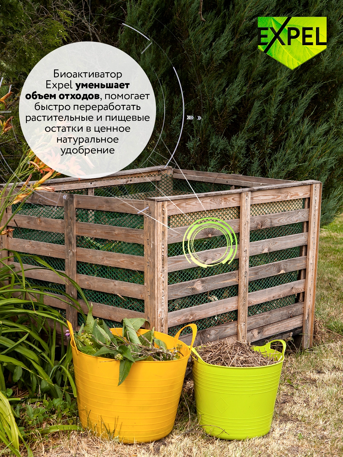 Благодаря работе высокоэффективных биокомпонентов, препарат в 3-4 раза ускоряет созревание компоста, уменьшает объем отходов, помогает быстро переработать растительные и пищевые остатки в ценное
