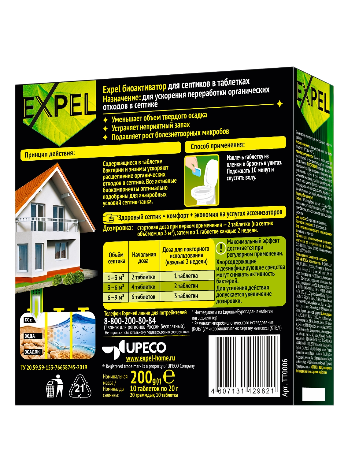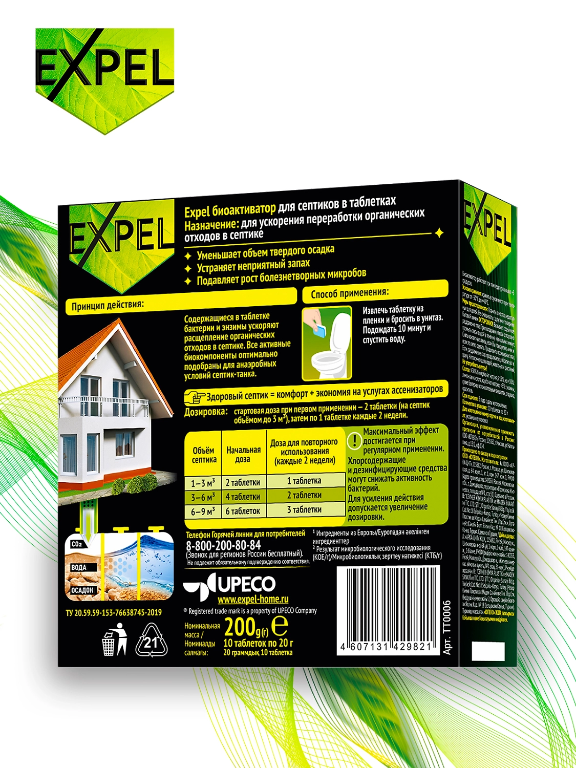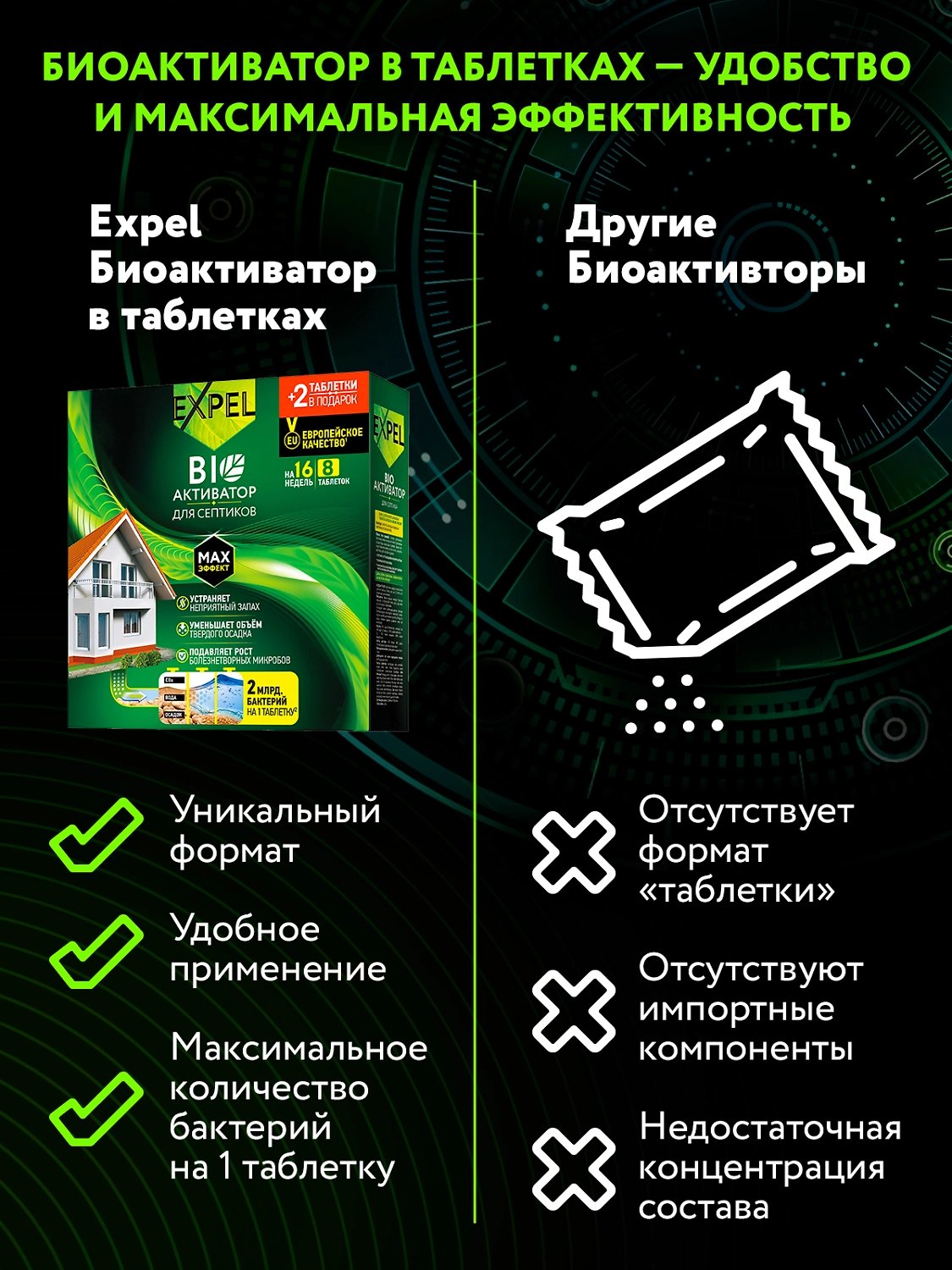 Экологически чистый продукт на базе микроорганизмов. Бактерии активизируются через один-два часа после попадания в воду и начинают разлагать отходы на воды, соли и углекислый газ.