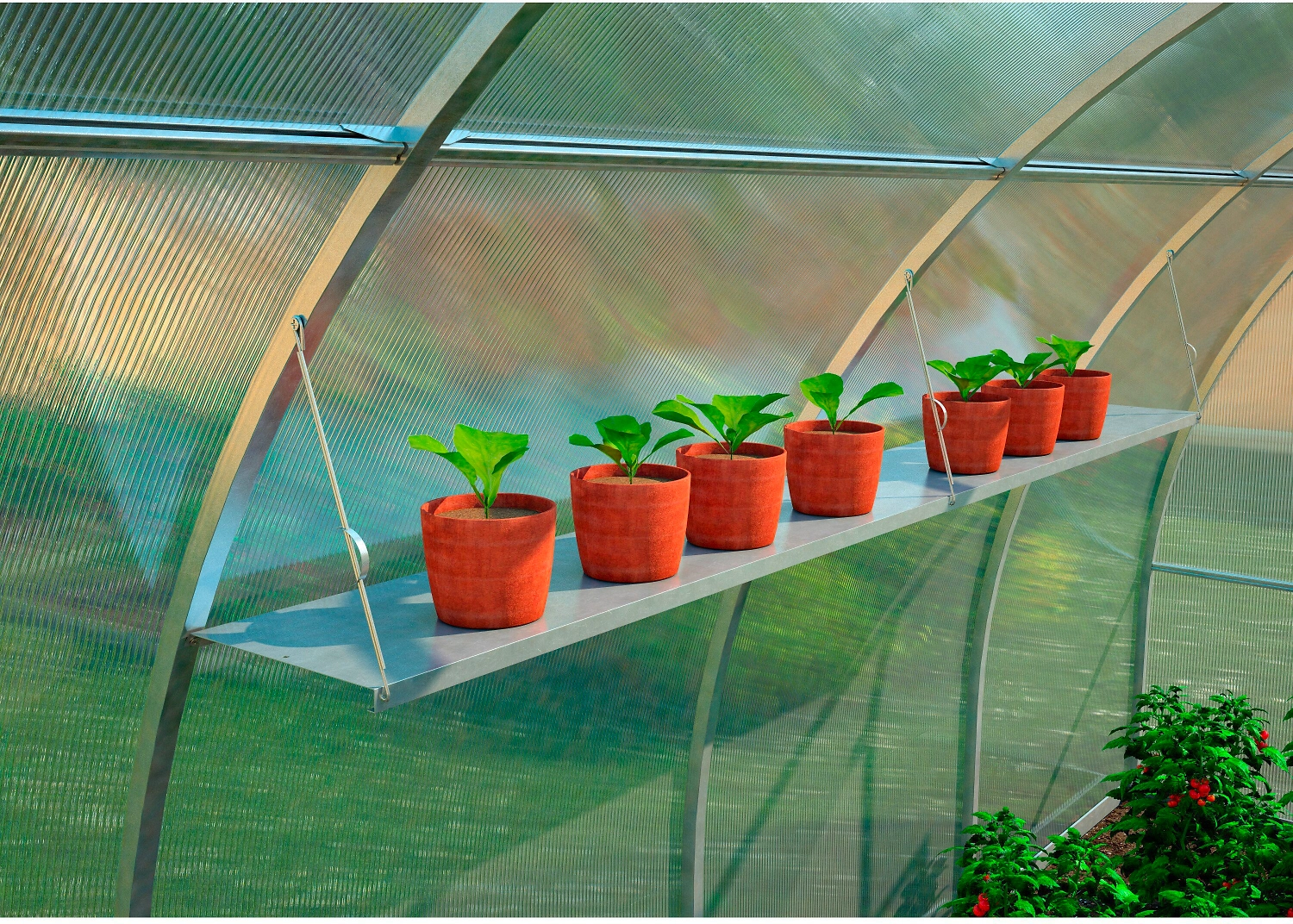 Универсальная полка подвесная устанавливается внутри теплицы для выращивания рассады или горшечных растений.