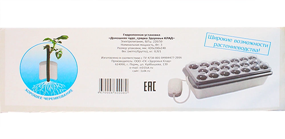 Используется для выращивания рассады, зелени, лука, для проведения черенкования декоративных культур. Имеется удобная крышка-теплица, которая позволяет создать все условия для развития растений. Корни рассады постоянно орошаются пузырьками воздуха и получают комплекс питательных веществ.