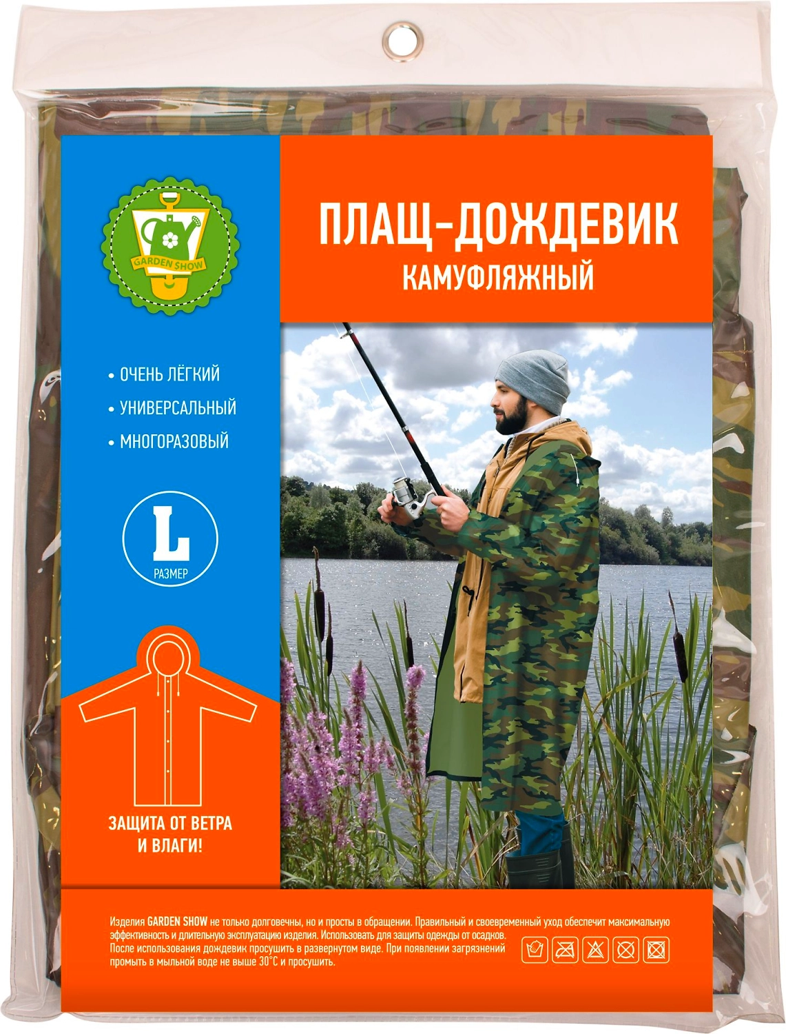 Плащ-дождевик с капюшоном GARDEN SHOW полиэстер размер L камуфляж