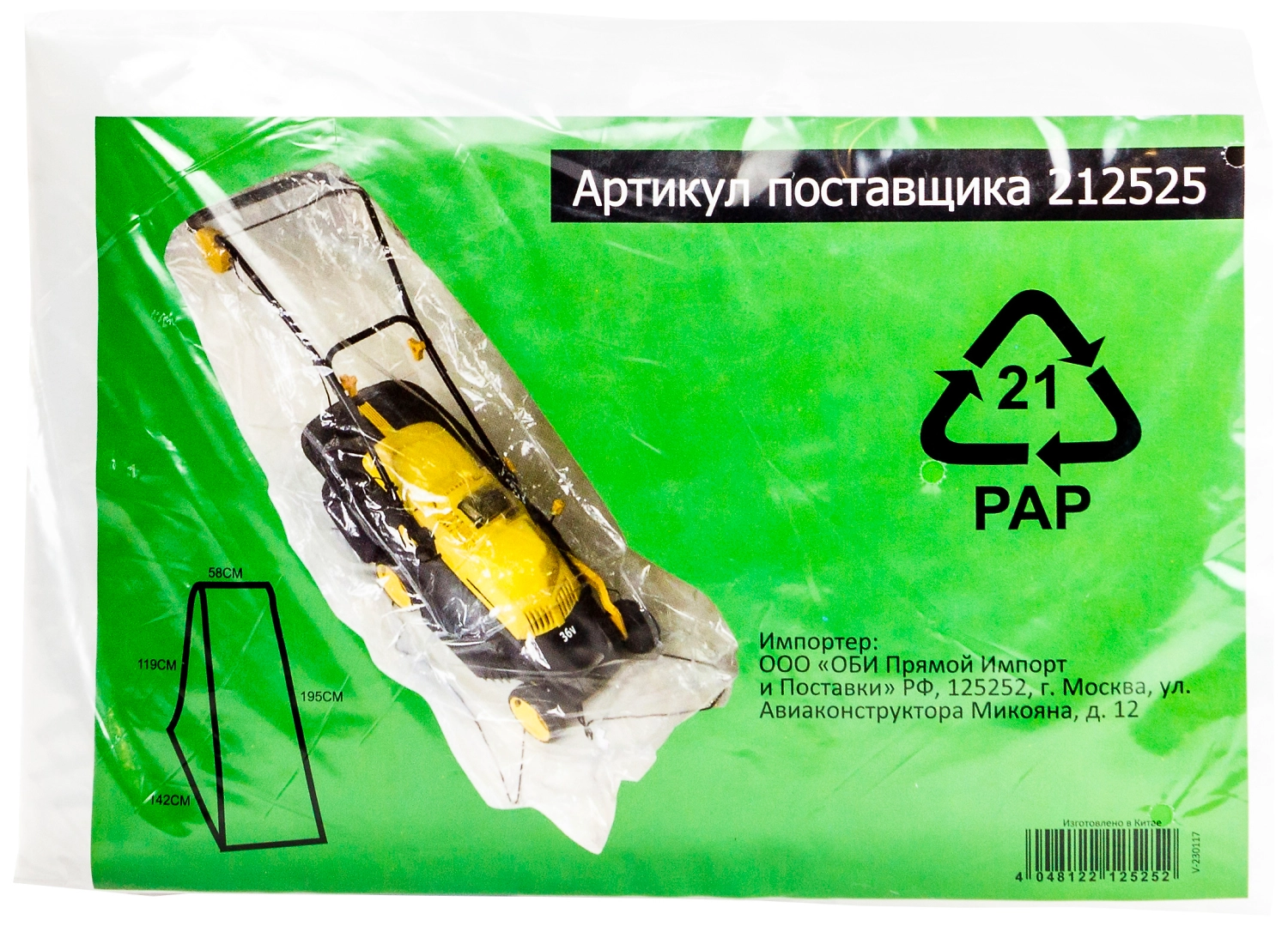 • Наименование товара Чехол для садовой техники