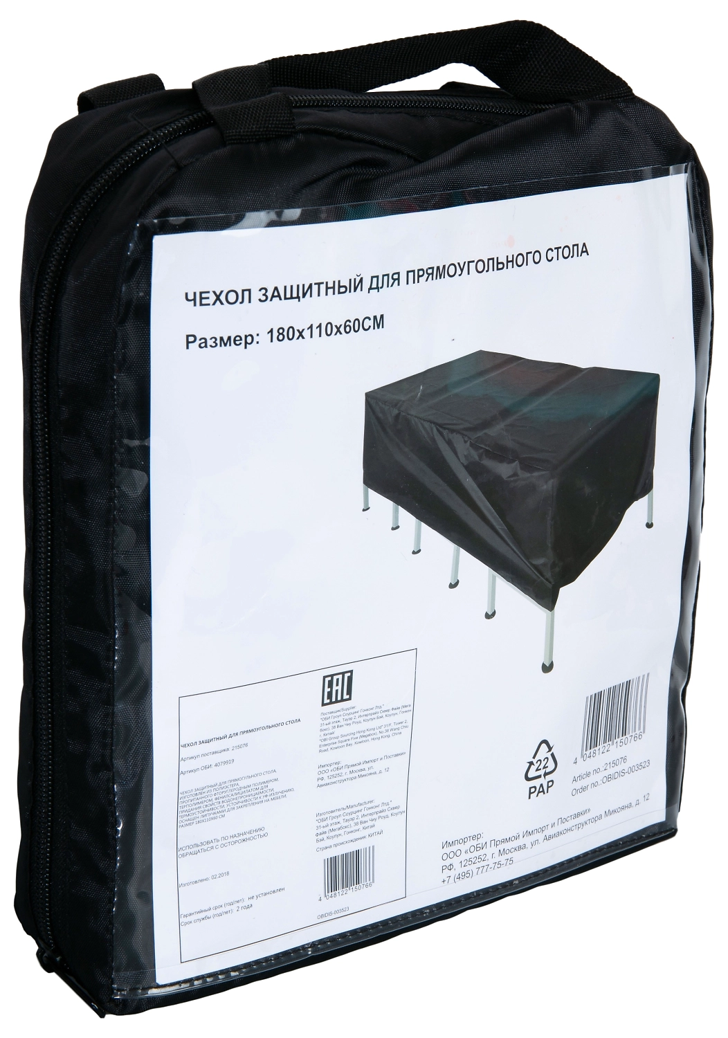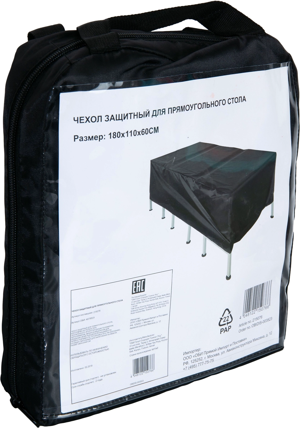 Чехол защитный для прямоугольного стола, изготовлен из полиэстера, пропитанного фторуглеродным полимером, терполимером, фенилсалицилатом для придания свойств водонепроницаемости, термоустойчивости, устойчивости к уф-излучению, оснащен липучками для закрепления на мебели, размер 180х110х60 см.