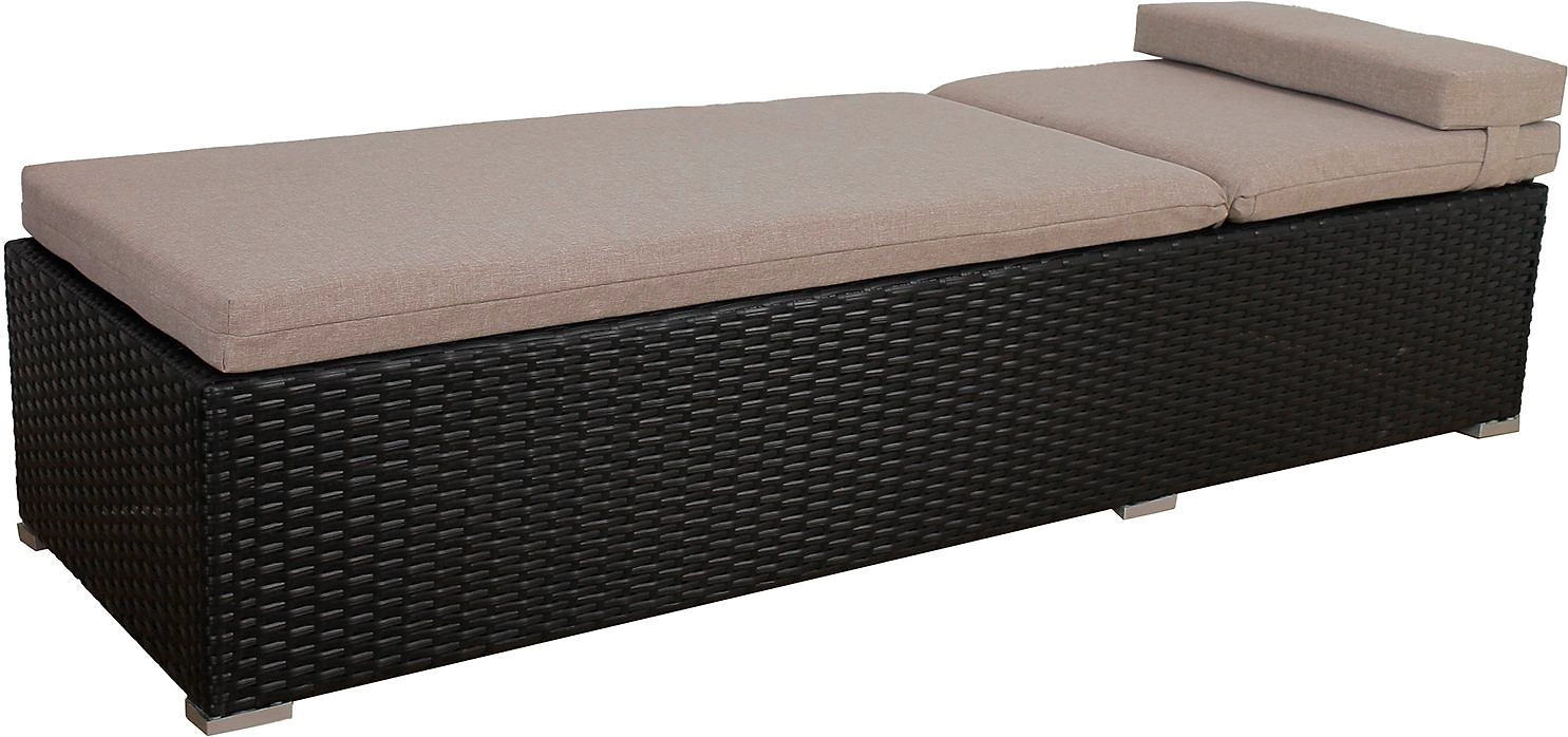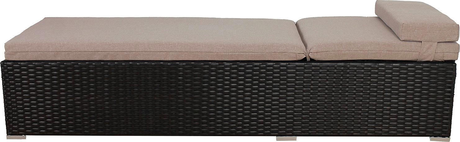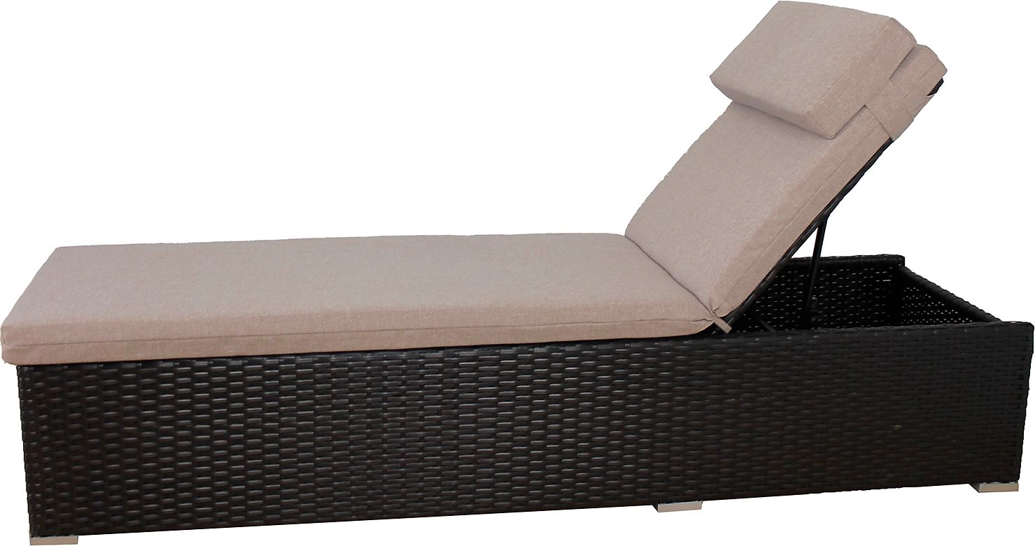 Лежак с регулируемой спинкой - это максимум комфорта за счет различного угла наклона спинки. Каркас выполнен из стали с порошковым покрытием, который оплетен искусственным ротангом. Максимальная нагрузка 120 кг.