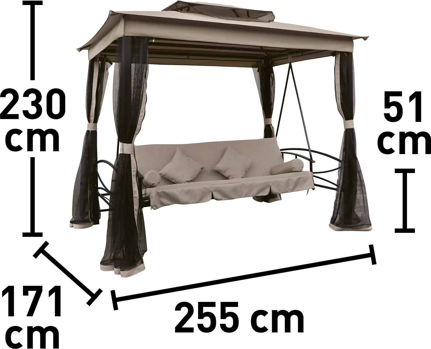 - Легкая москитная сетка, прикрепленная к крыше, превращает конструкцию в защищенный от насекомых шатер.