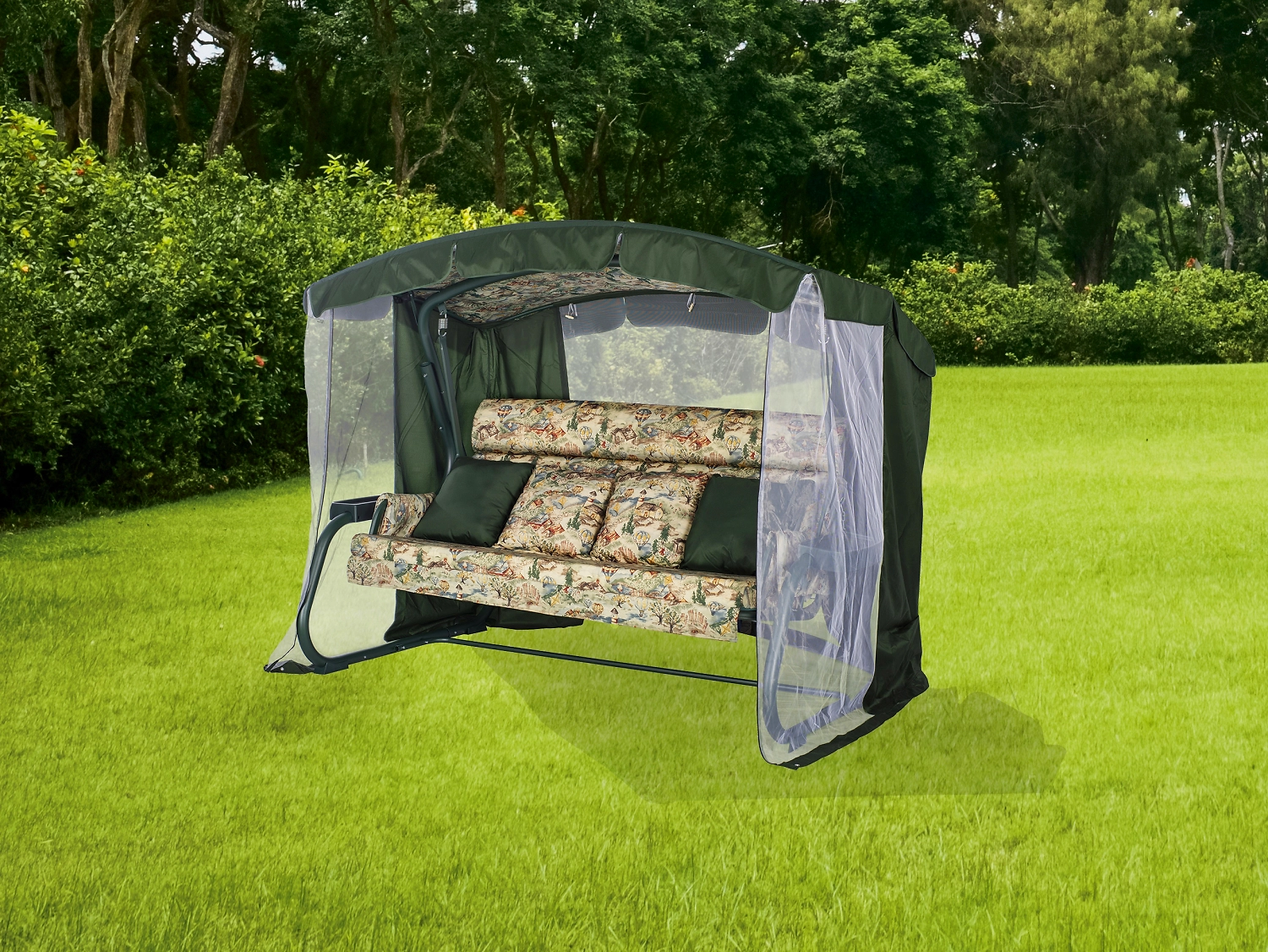 Садовые качели Удачная мебель Риека - это надежная модель, которая обеспечит комфортный отдых в саду или на террасе. Сидение с мягкой обивкой дополнено четырьмя большими подушками. Глубокий зеленый гармонично сочетается с цветочным принтом в винтажном стиле.