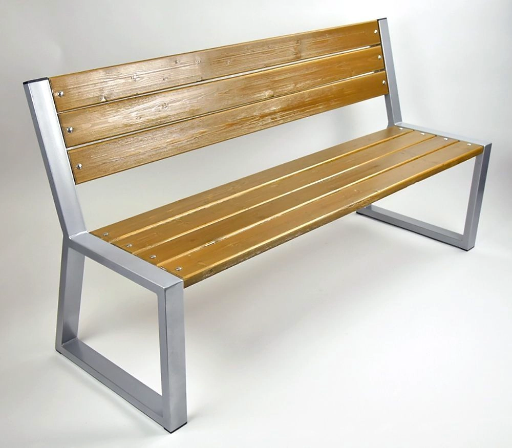 Скамья Дачный cезон Бульвар - это простота и надежность без излишеств. Прочный стальной каркас, выкрашенный в серый цвет, эффектно контрастирует с темными брусками из массива дерева.