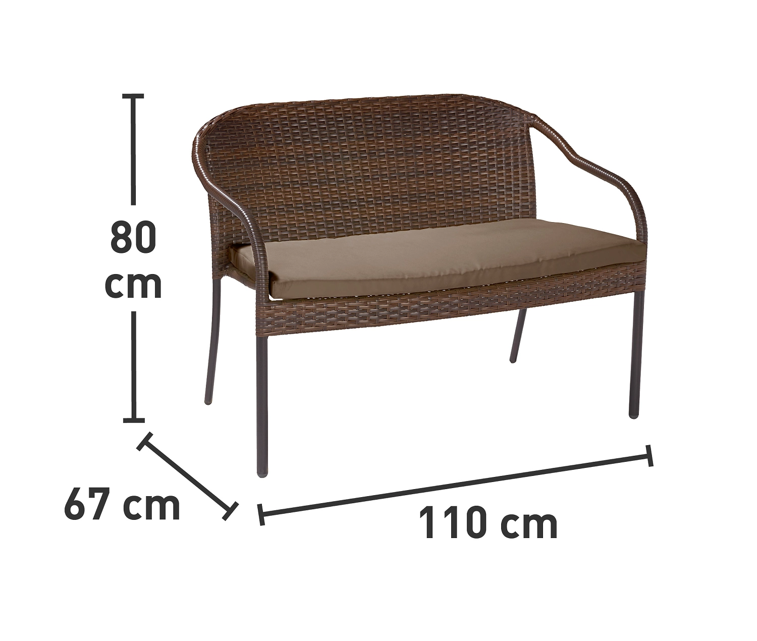 Диван садовый Fazanda рассчитан на размещение двух человек, подходит для летней веранды, балкона, террасы или беседки. Может использоваться для обустройства фуд-зоны в саду или на дачном участке.