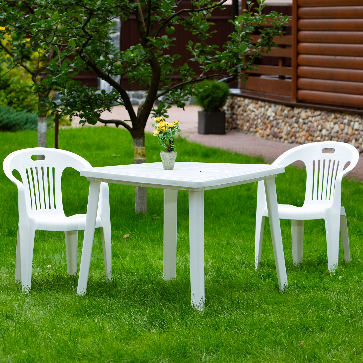 Пластиковый стол - это удобный и практичный вариант для небольших дачных и придомовых участков.