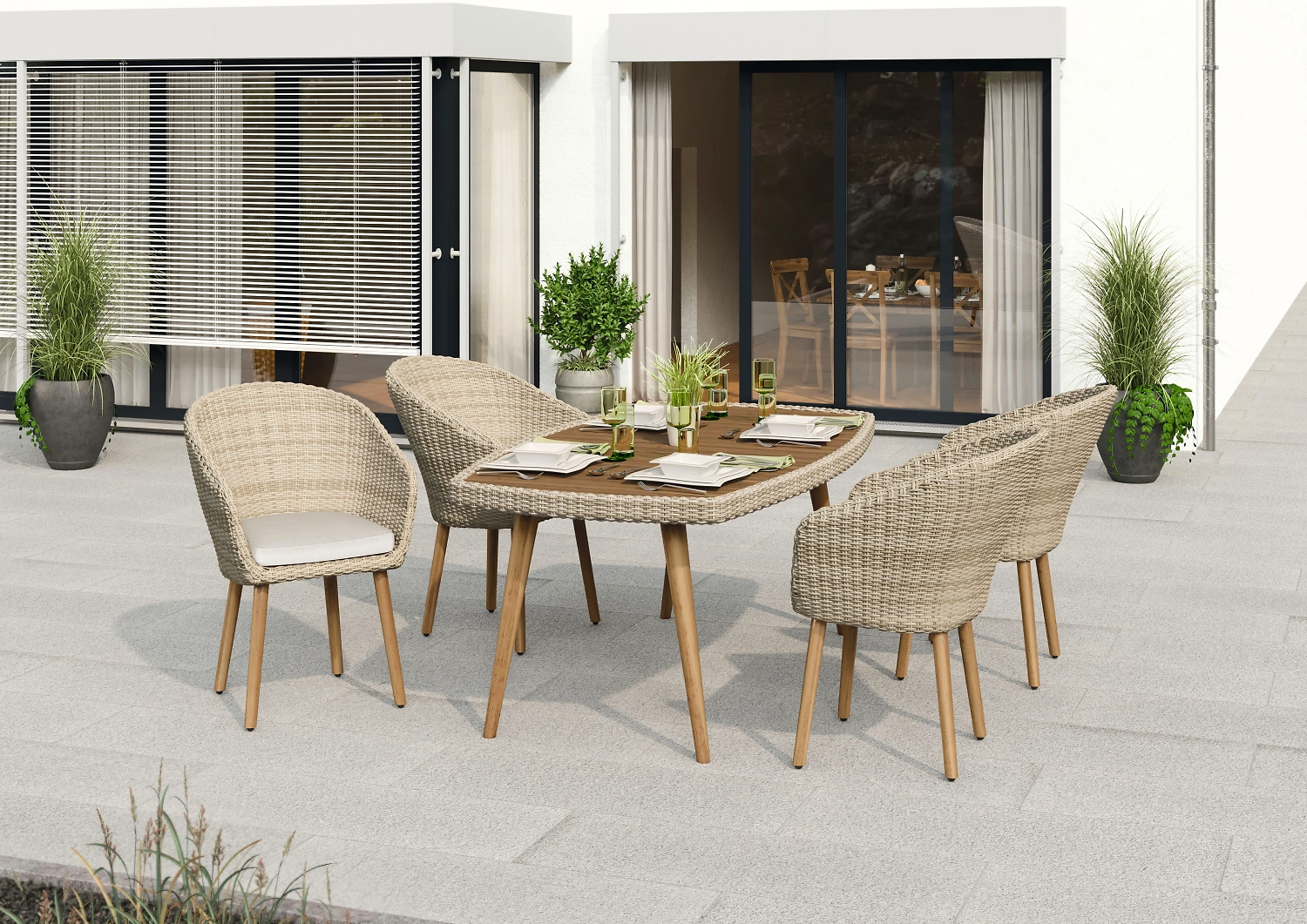 - Прочный и экологически чистый искусственный ротанг прекрасно переносит повышенную влажность и перепады температуры, не выгорает на солнце и хорошо моется.