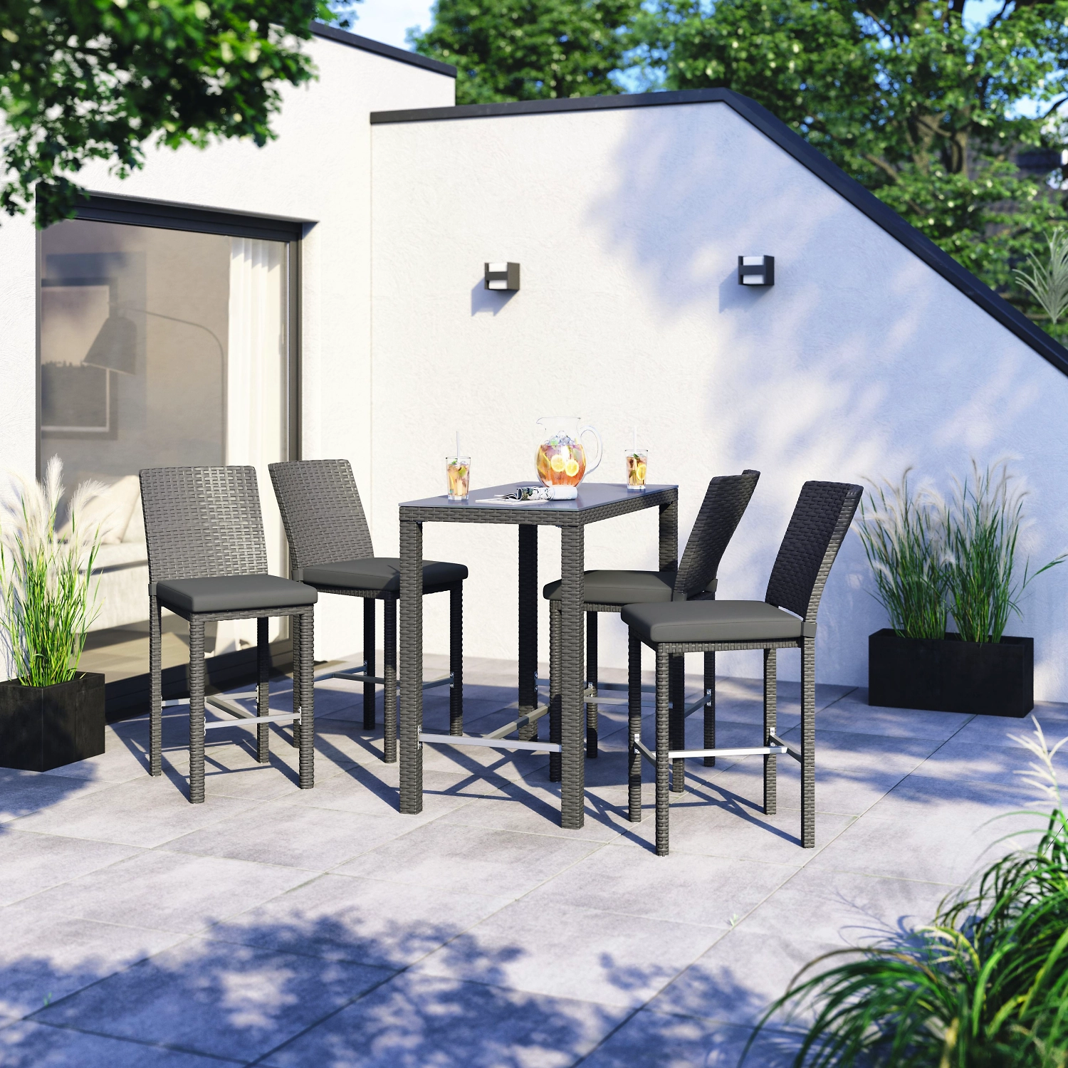 Барная мебель на приусадебном участке придает нотку экзотики дачному отдыху, делает атмосферу комфортной и непринужденной.